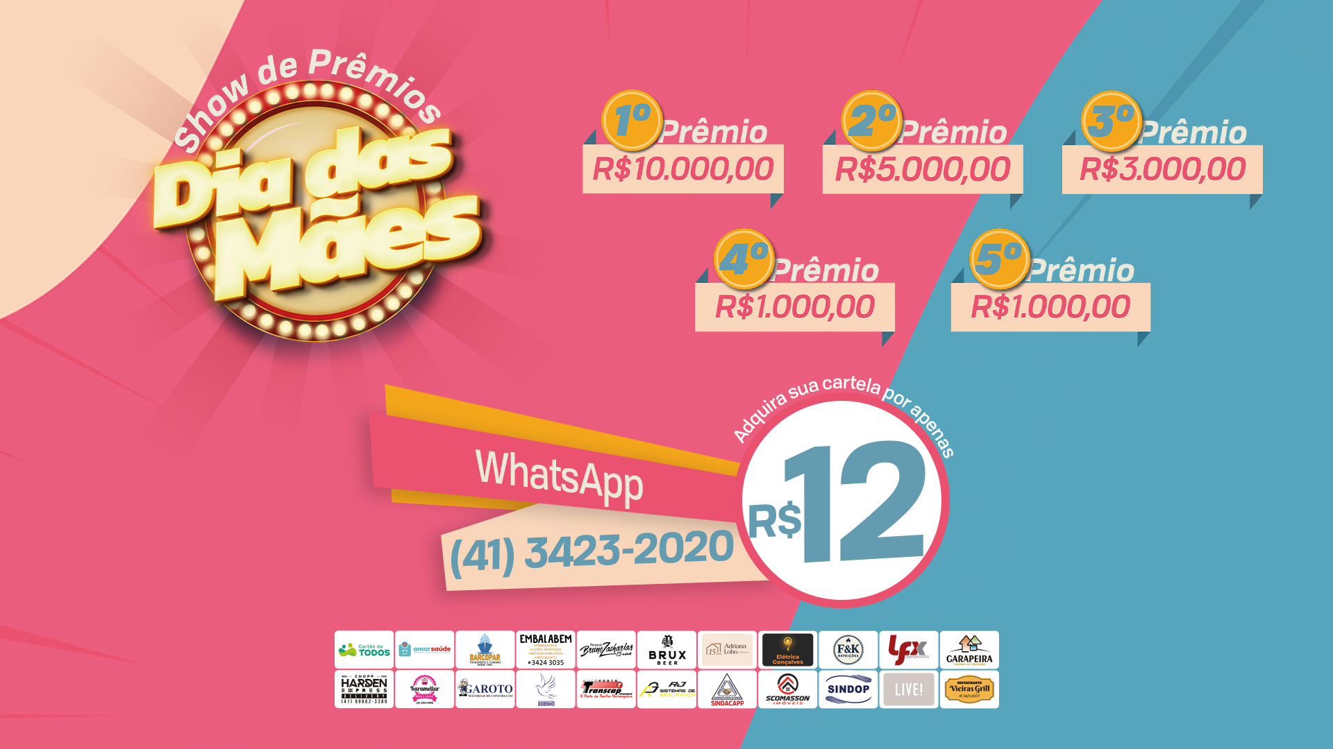 Para adquirir sua cartela ou obter mais informações, entre em contato pelo WhatsApp (41) 3423-2020 ou compareça na Rádio Difusora.