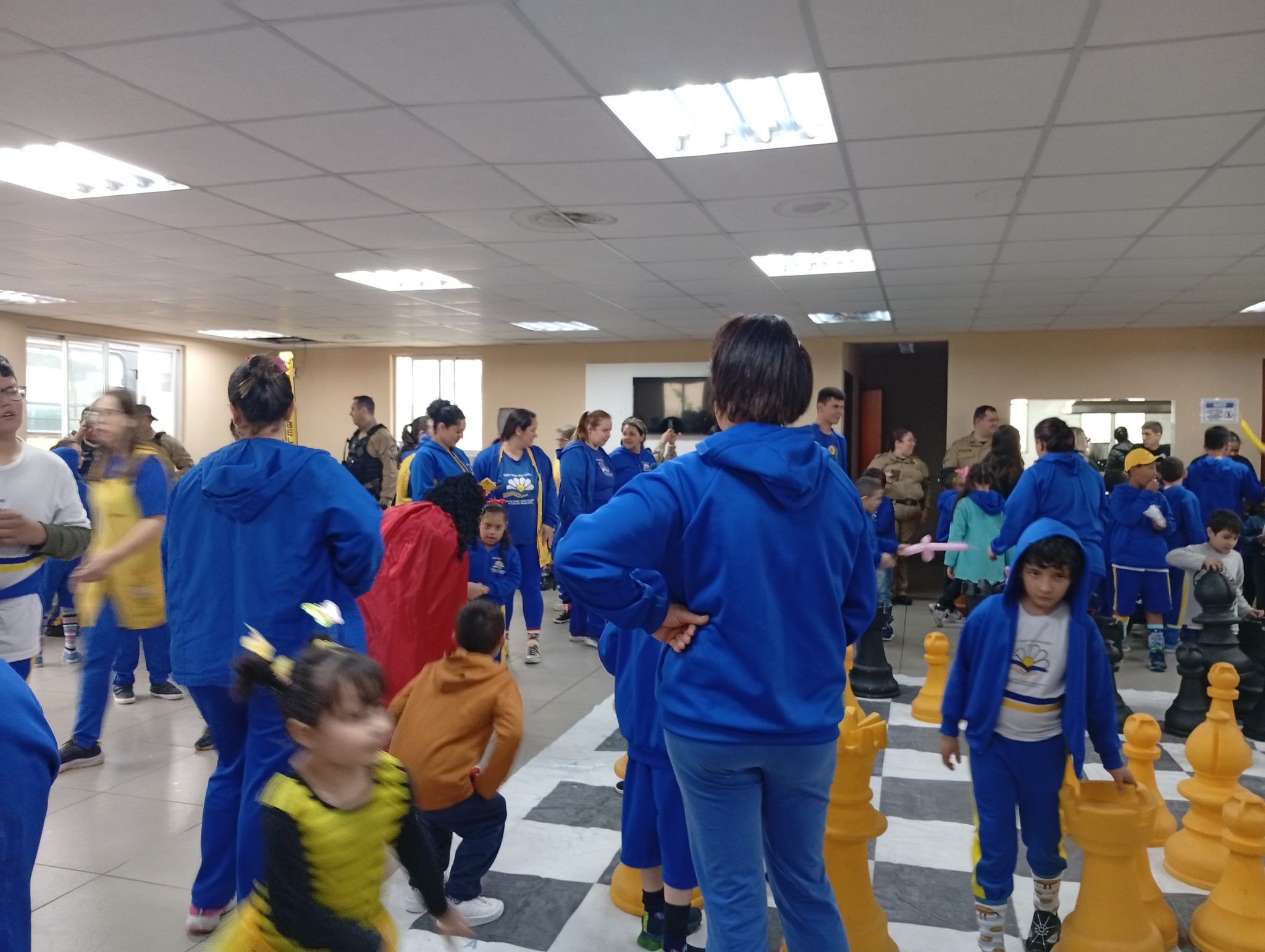 Na tarde desta quinta-feira (9), o 9º Batalhão de Polícia Militar realizou uma ação especial em comemoração ao Dia das Crianças, proporcionando momentos de alegria e integração para os alunos da Escola APAE de Paranaguá.