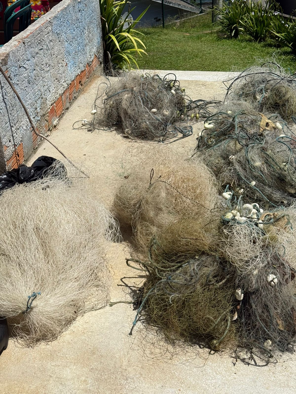 Ao longo dos três dias de trabalho, foram recolhidos diversos quilos de redes, boias, cordas e outros equipamentos de pesca, entregues voluntariamente pelos pescadores locais. O objetivo foi garantir a destinação correta desses materiais, evitando que acabem descartados no mar e causem impactos ambientais.