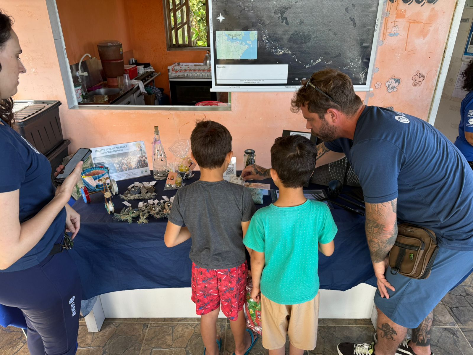 “Nosso objetivo é mostrar que esses materiais podem ganhar uma nova vida, seja por meio do artesanato, da decoração ou de outras formas de reutilização. Também realizamos atividades de sensibilização e educação ambiental com os pescadores e pescadoras, que são os protagonistas desse processo”, explicou Carolina.