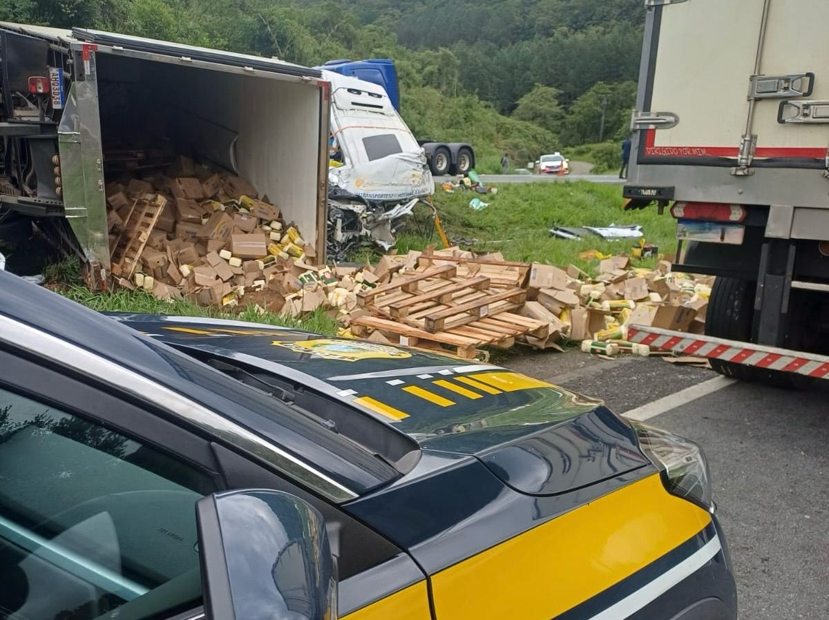 Segundo a PRF, o acidente ocorreu por volta das 3h45, no quilômetro 4,5 da BR-116, próximo à divisa com o estado de São Paulo. Com o impacto, a carga de queijo transportada pela carreta ficou espalhada pela pista.