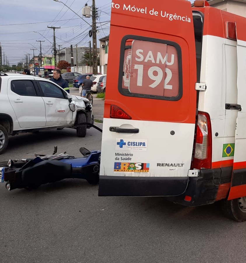 Um acidente de trânsito foi registrado no cruzamento das ruas Manoel Pereira e Arthur Bernardes, no bairro Jardim Alvorada, em Paranaguá.