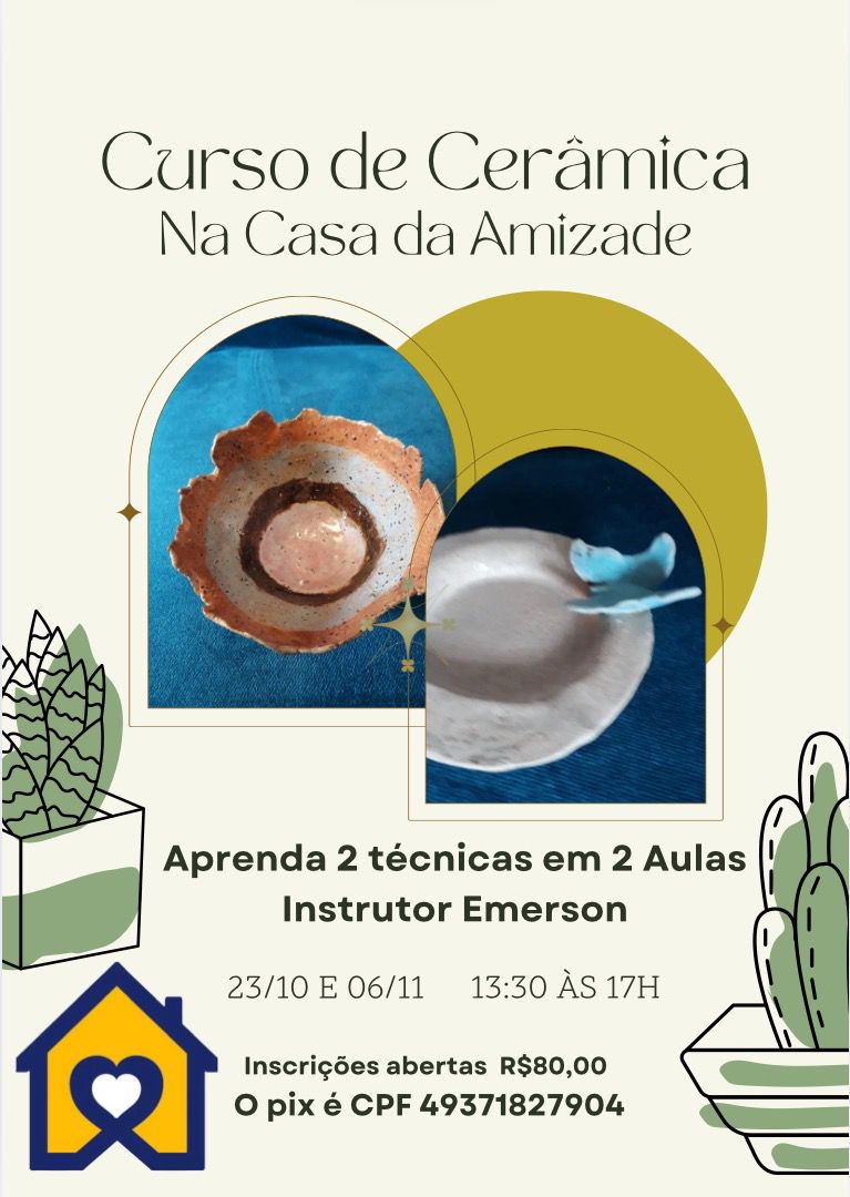 A Associação das Senhoras dos Rotarianos de Paranaguá está com inscrições abertas para o Curso de Cerâmica, que será realizado na Casa da Amizade. A atividade propõe uma imersão na arte com argila e promete momentos de aprendizado, relaxamento e criatividade.