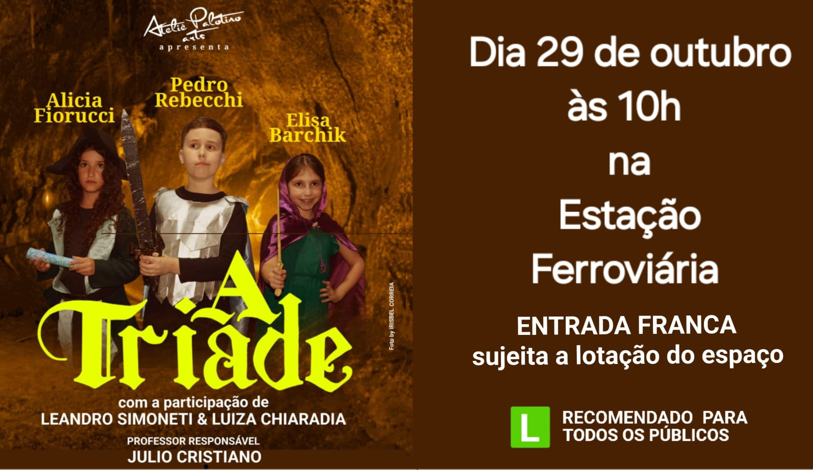 No próximo dia 29 de outubro, a Estação Ferroviária de Paranaguá será palco da peça teatral infantil “A Tríade”, um espetáculo divertido, moderno e cheio de aventuras, voltado para todas as idades.