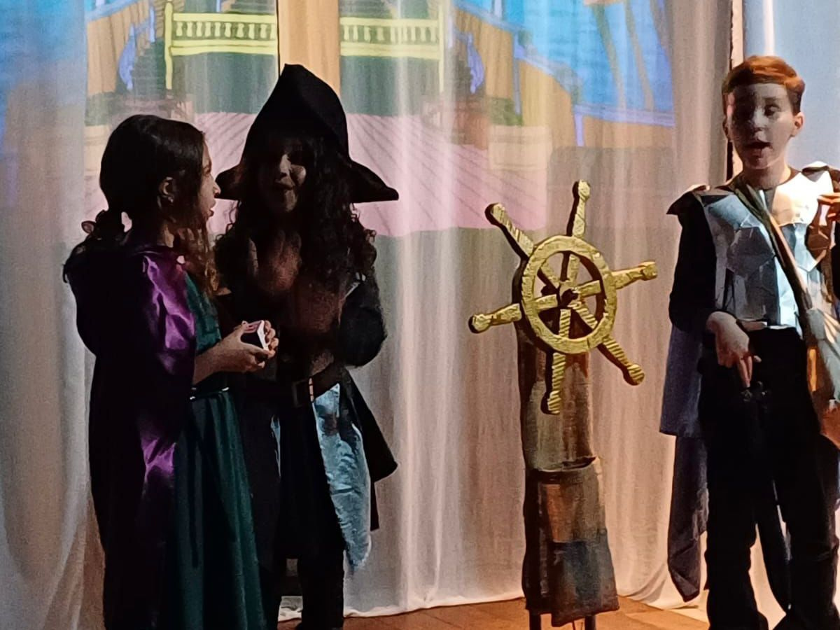 O elenco é formado por Alicia Fiorucci (Pirata Mérida), Elisa Barchik (maga Hermione), Pero Rebecchi (cavaleiro Hermes), Luiza Corrêa Chiaradia (Fada Esmeralda / Rainha Umbra) e Leandro Simoneti, que dá voz ao ancião e assina a assistência de direção. Nesta apresentação, o professor Julio Cristiano também sobe ao palco interpretando o Rei Sem Nome.
