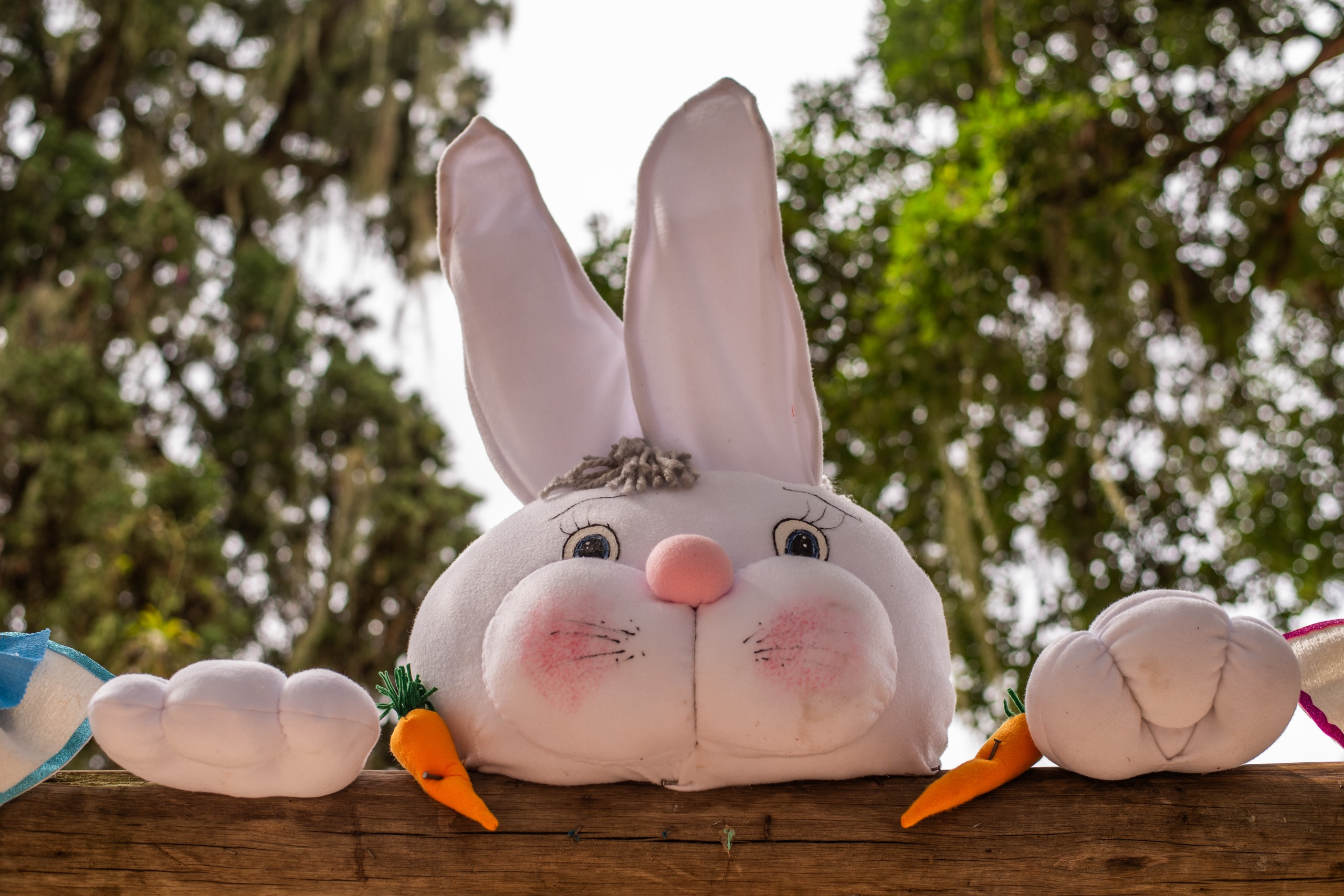 Outro destaque é a decoração especial de Páscoa, produzida pela equipe do Provopar com materiais recicláveis. O espaço conta com bonecos feitos a partir de galões reaproveitados, fibras recicladas e tecidos reutilizados, criando um cenário temático voltado para fotos e interação do público.