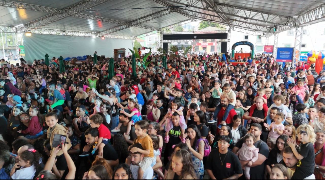 A festa reuniu milhares de pessoas, que lotaram a Praça de Eventos para celebrar o dia dedicado à alegria da criançada.