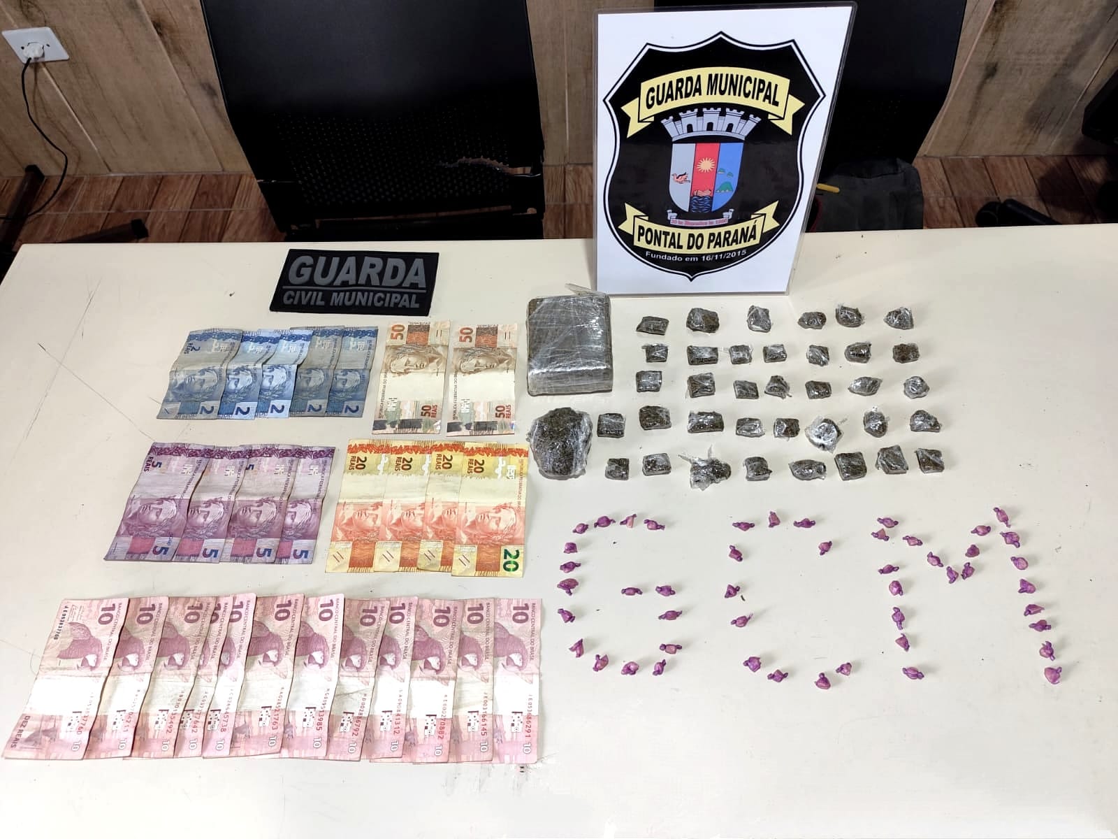 Durante a busca, foram encontradas 36 porções de maconha prontas para venda, um tablete e uma porção adicional da mesma substância — totalizando cerca de 396 gramas —, além de 46 pedras de crack, R$ 330 em dinheiro e um aparelho celular supostamente usado nas negociações.