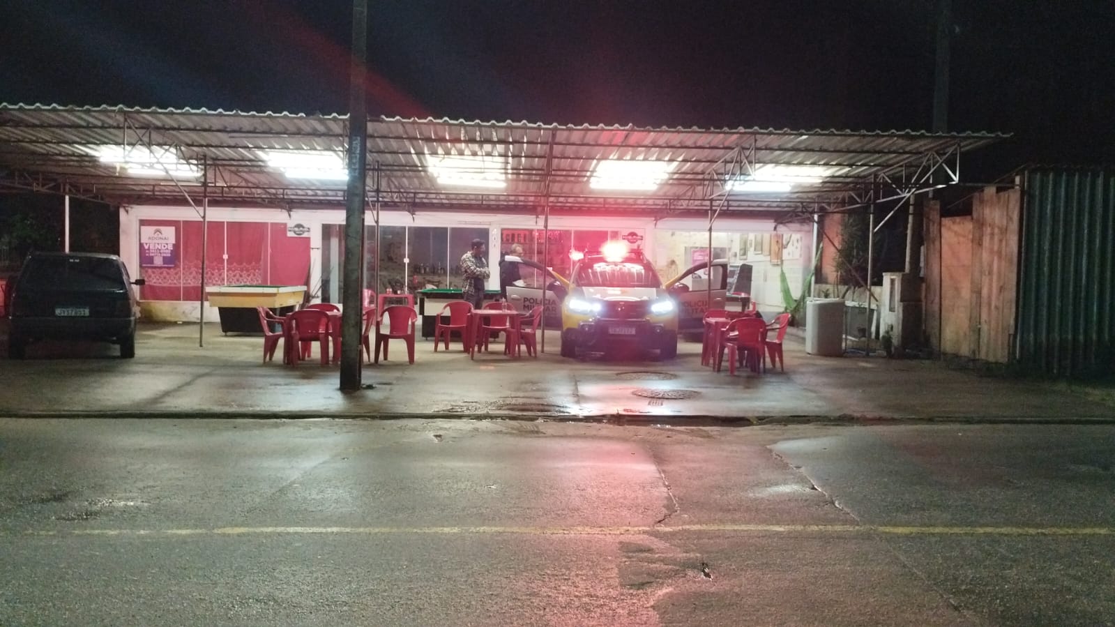 A área foi isolada e a Polícia Civil acionada. A perícia criminal esteve no local, recolhendo dados e identificando que a vítima apresentava dois disparos na cabeça. Também foram apreendidos celulares e equipamentos de monitoramento do estabelecimento, que serão analisados para auxiliar nas investigações.