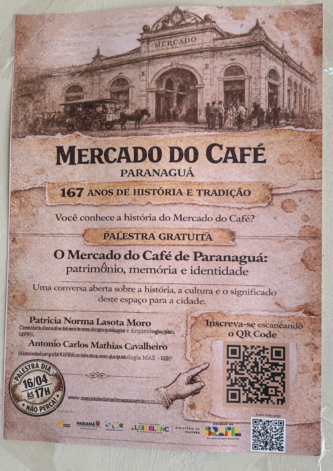 O evento, intitulado “O Mercado do Café de Paranaguá: patrimônio, memória e identidade”, convida o público a participar de uma conversa aberta sobre a relevância histórica, cultural e social do local. A proposta é ampliar o conhecimento da população sobre o papel do mercado ao longo dos anos e sua contribuição para o desenvolvimento da cidade.