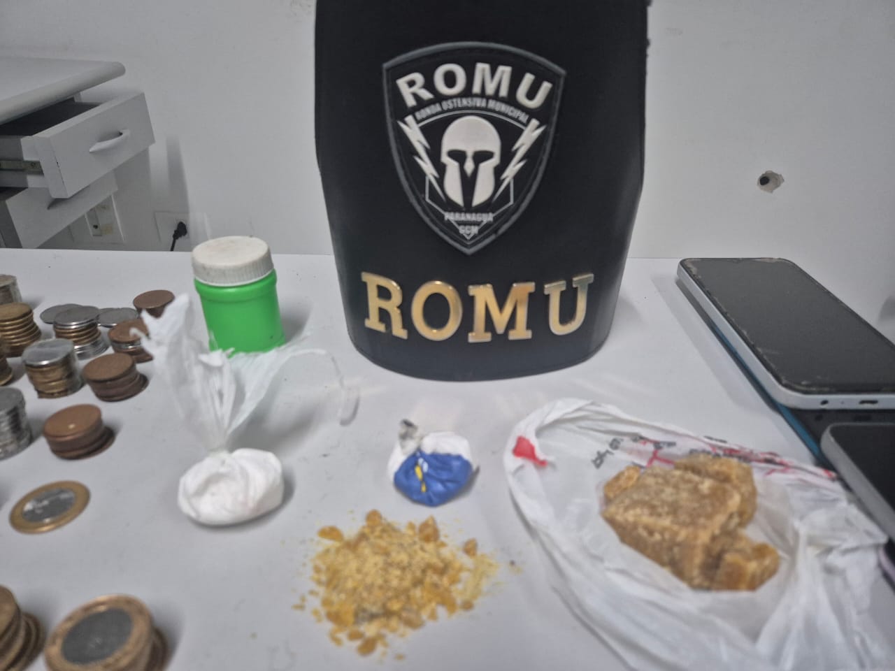Na madrugada desta segunda-feira (13), por volta das 2h30, uma equipe da ROMU realizava patrulhamento pelo bairro Jardim Araçá, em Paranaguá, quando avistou uma mulher em atitude suspeita carregando uma bolsa preta. Ao perceber a aproximação da viatura, ela tentou fugir em direção a um beco, mas foi acompanhada e abordada pelos agentes nas proximidades de uma residência.