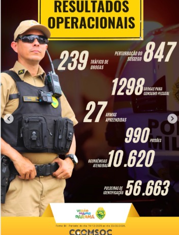 A Polícia Militar do Paraná (PMPR) encerrou a Operação Verão Maior 2025–2026 com resultados expressivos nas ações de segurança pública realizadas no litoral e em áreas turísticas do Paraná. Ao longo da temporada, foram registradas 990 prisões, apreensão de 27 armas e atendimento a 10.620 ocorrências, reforçando a atuação ostensiva e preventiva da corporação.