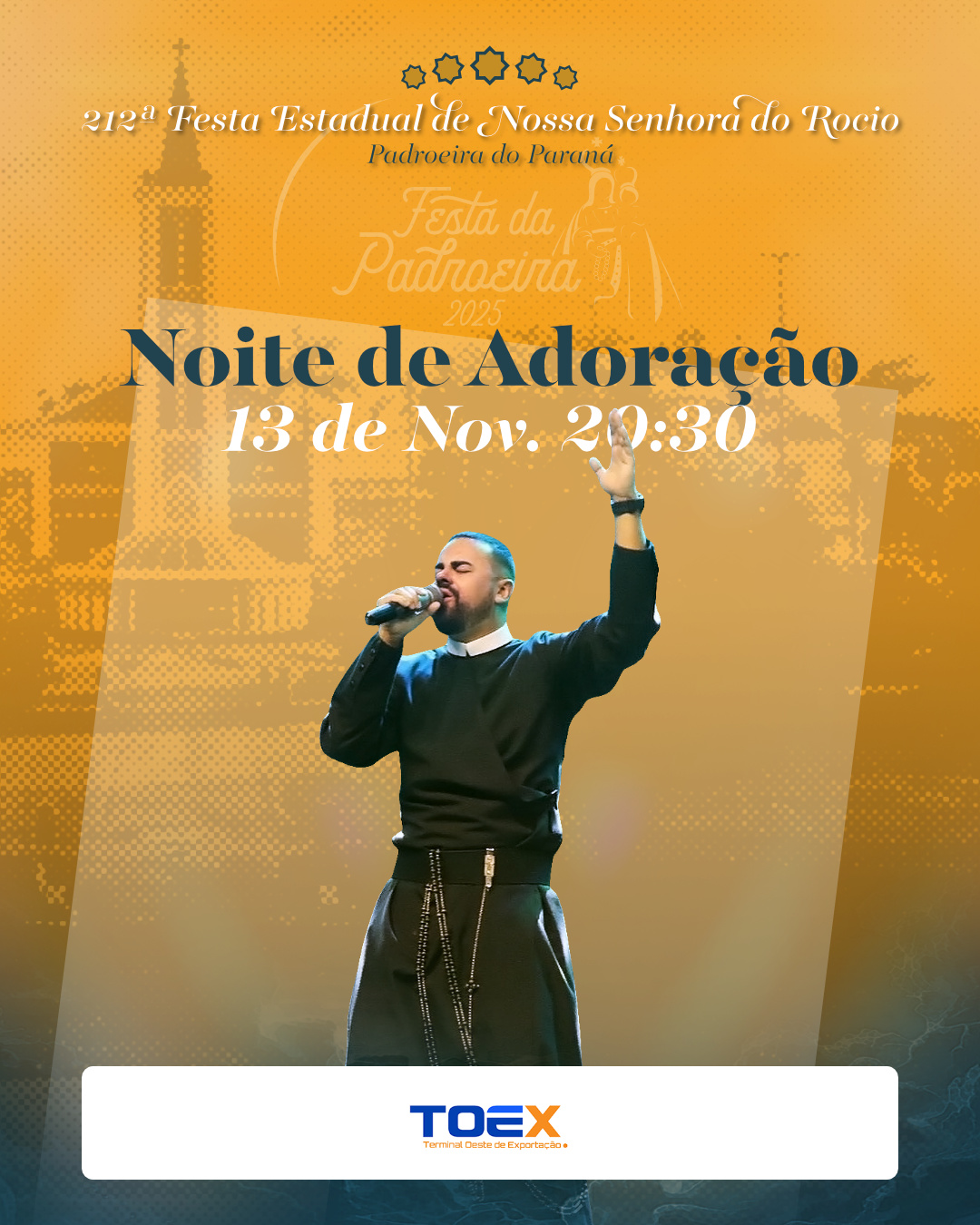 Na noite desta quinta-feira (13), o Santuário Estadual de Nossa Senhora do Rocio será palco de uma grande noite de louvor, conduzida pelo Padre Matheus Rocha, que promete envolver o público com momentos de oração, música e alegria.