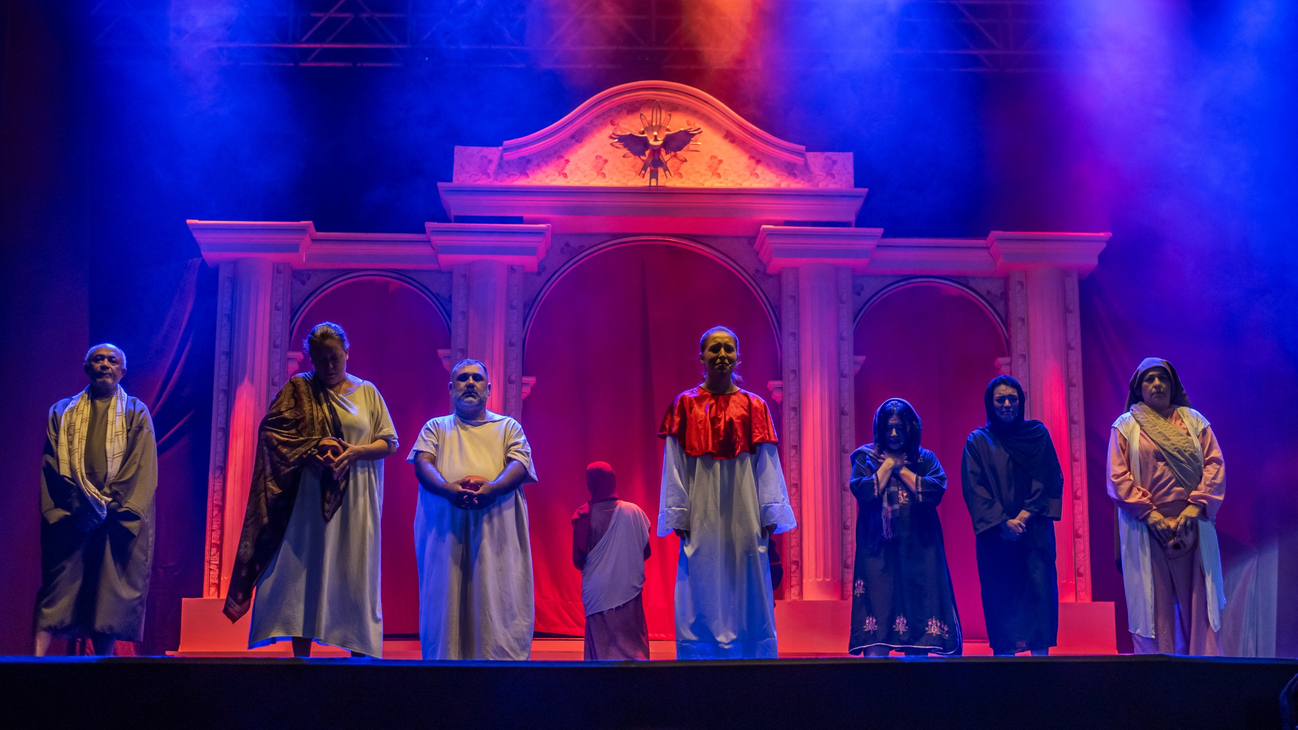 Com uma proposta sensível e diferenciada, a peça trouxe uma releitura da história de Jesus Cristo, adaptada ao universo caiçara. A narrativa foi conduzida por um diálogo entre avó e neta, que, por meio da dor da perda, estabelece um paralelo com a trajetória de Cristo, aproximando o público de forma humanizada e emocionante.