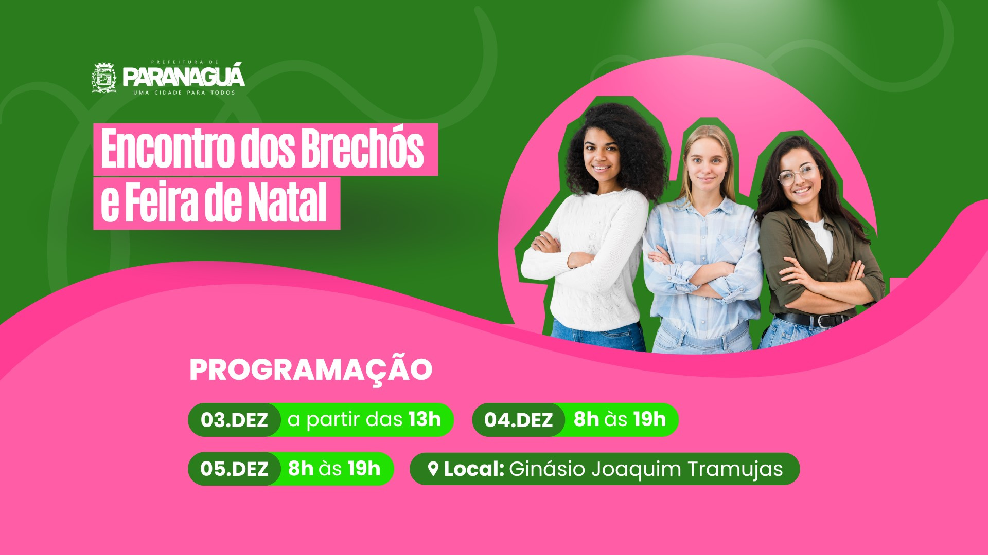 A Prefeitura de Paranaguá promove, entre os dias 3 e 5 de dezembro, mais uma edição do tradicional Encontro de Brechós, que neste ano chega com uma novidade: a realização simultânea da Feira de Natal. O evento será realizado no Ginásio Joaquim Tramujas, com entrada gratuita.