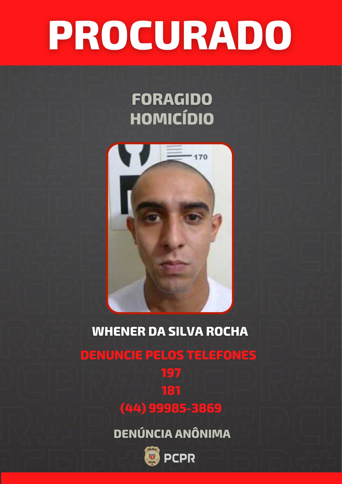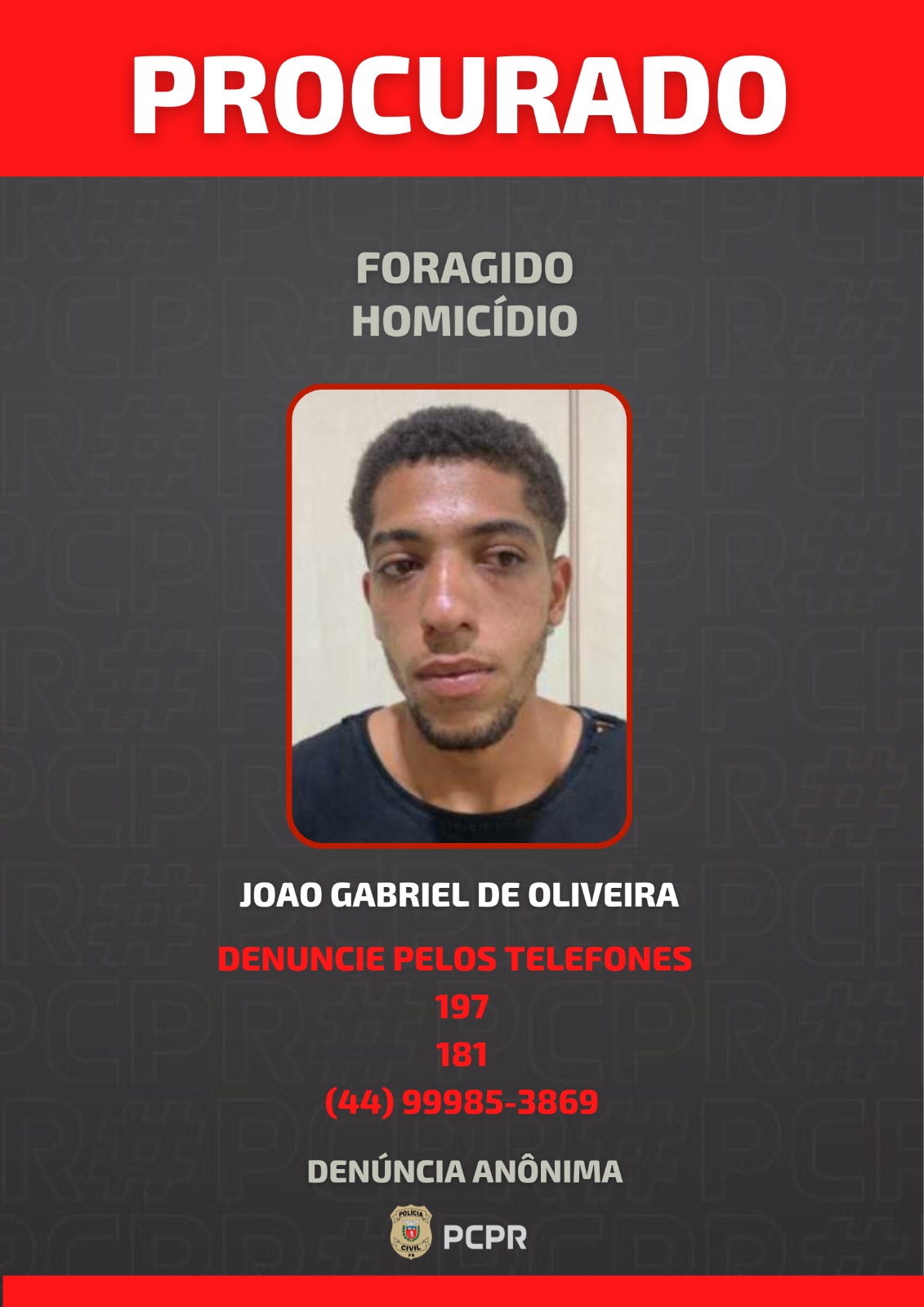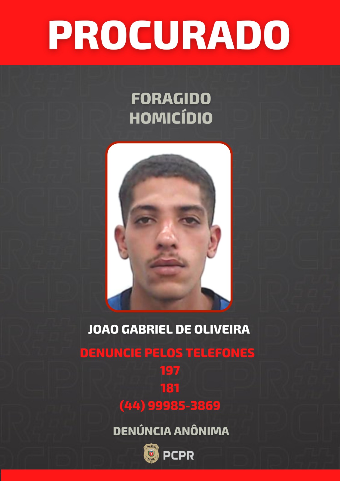 DENÚNCIAS – A PCPR solicita a colaboração da população com informações que levem ao paradeiro do foragido. Denúncias podem ser feitas de forma anônima pelos telefones 197 da PCPR, 181 do Disque-Denúncia ou (44) 99985-3869 diretamente à equipe de investigação.