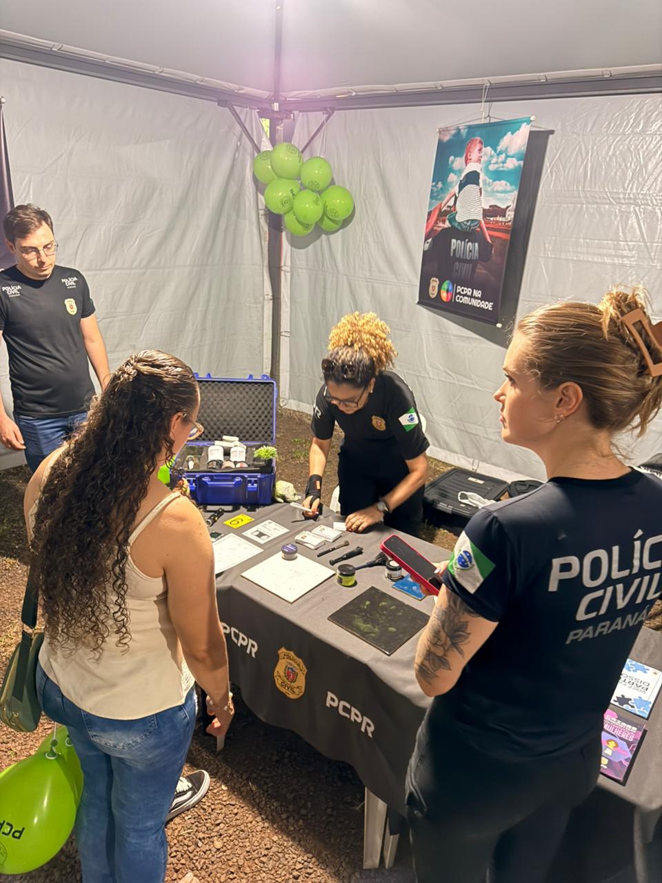 Além do atendimento ao público, o PCPR na Comunidade promove demonstrações de perícia papiloscópica, exposição de materiais táticos utilizados pela corporação, atividades lúdicas para crianças e distribuição de materiais informativos.
