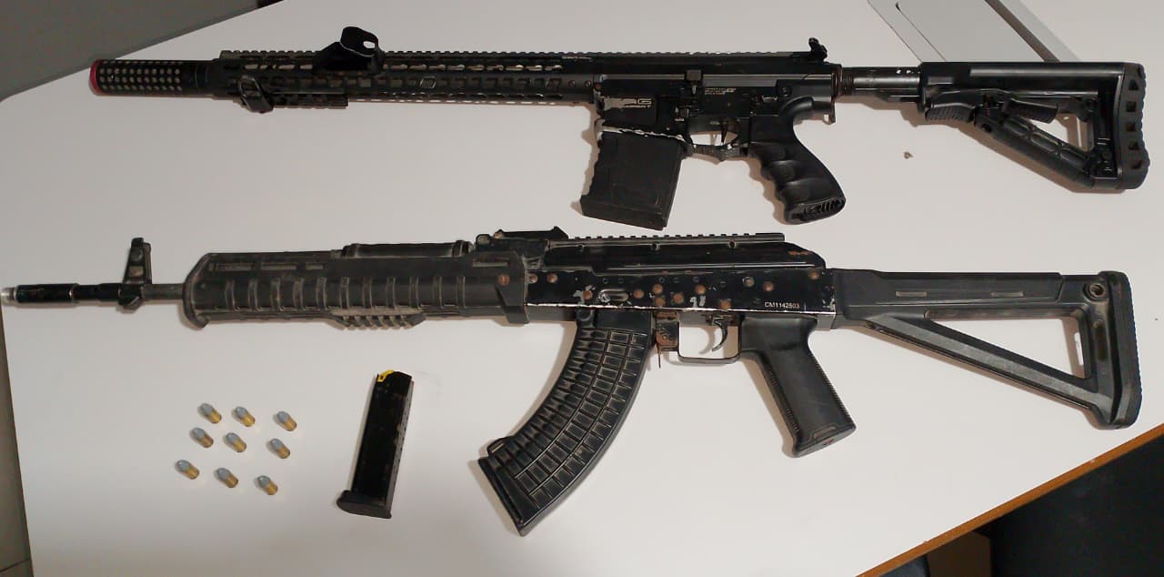 A equipe realizou acompanhamento na tentativa de abordagem, porém os suspeitos não foram localizados. Durante as buscas, os militares encontraram no chão um carregador de pistola calibre 9 milímetros contendo nove munições intactas. Já no final do corredor, foi localizada uma case contendo dois simulacros de arma de fogo do tipo fuzil.