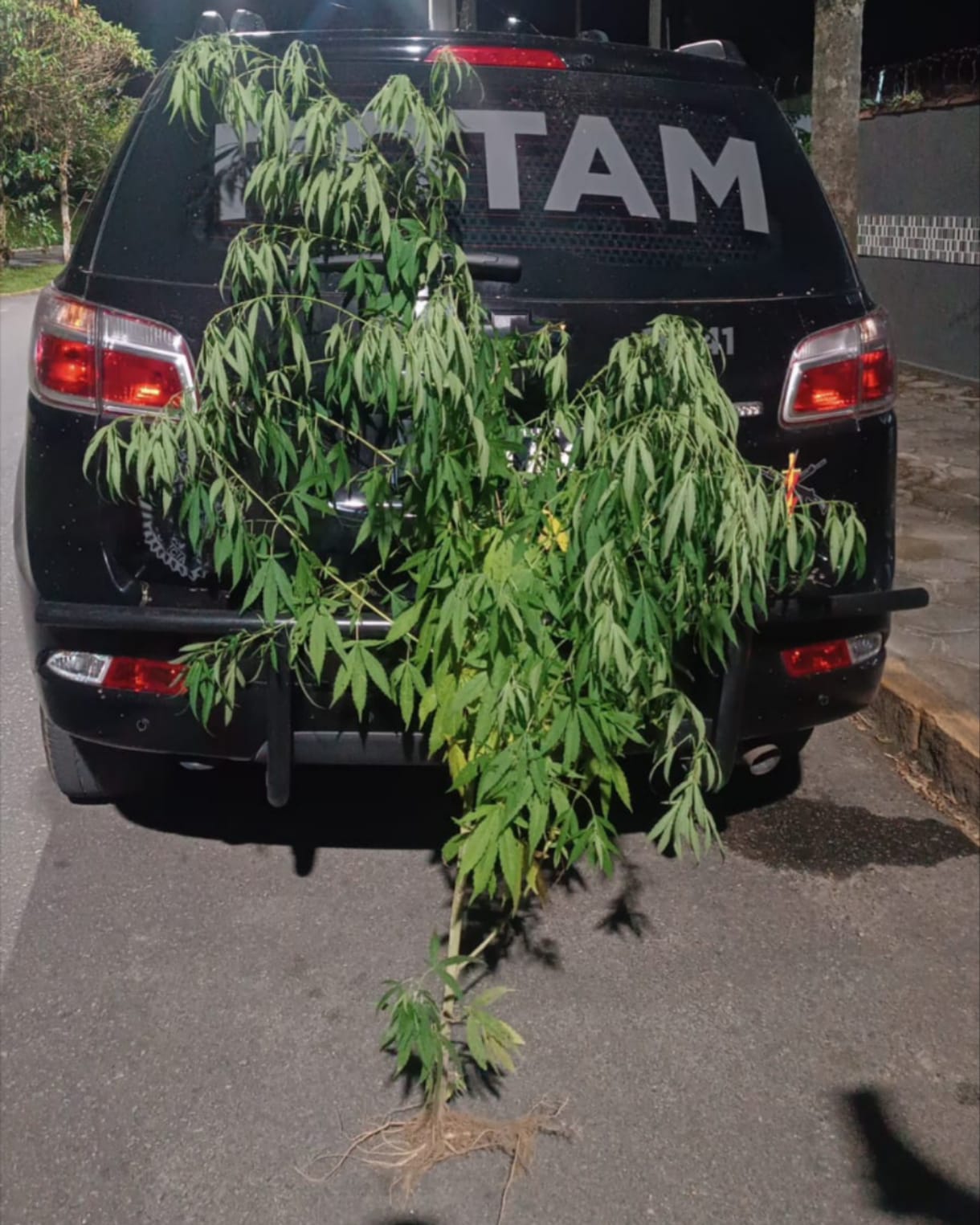 Diante dos fatos e da ausência do responsável pelo imóvel, a planta foi recolhida e encaminhada à Delegacia de Polícia Civil para os procedimentos cabíveis.