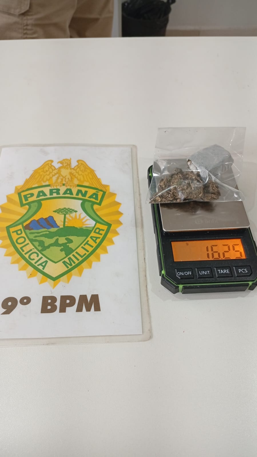 Ao ser abordado e submetido à busca pessoal, os militares localizaram no bolso de sua calça uma porção de substância análoga à maconha, totalizando 16,5 gramas. Questionado, o indivíduo relatou ser usuário e afirmou que se assustou ao notar a aproximação da equipe.