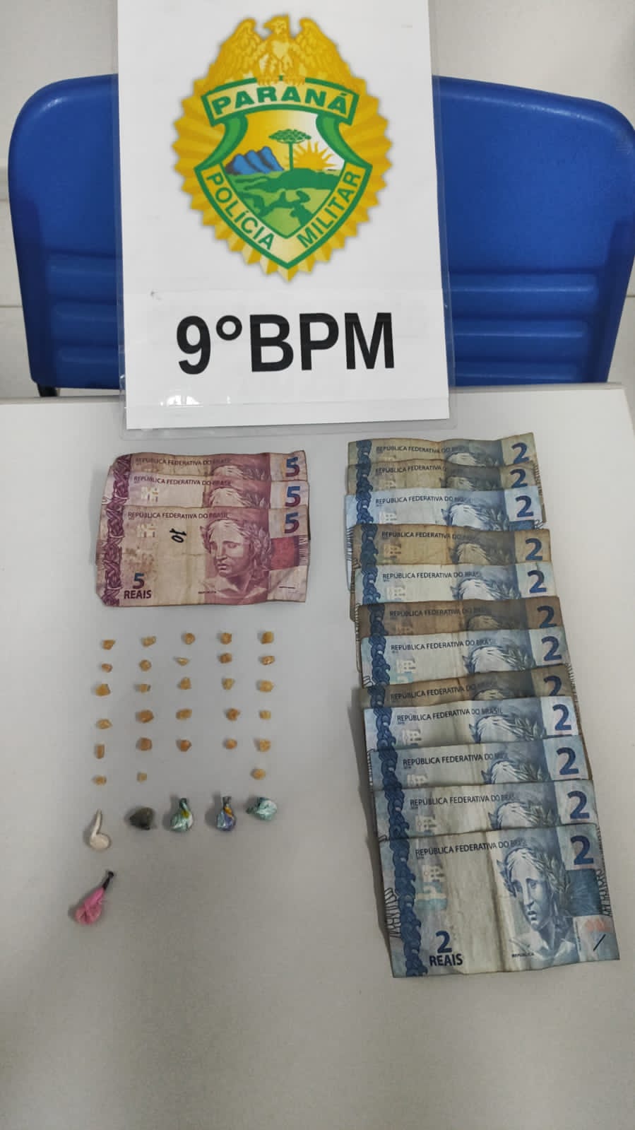 Questionado sobre o dinheiro, ele afirmou que seria proveniente da venda de drogas e indicou o local onde havia descartado o invólucro plástico. Dentro da embalagem, os militares localizaram 34 pedras de crack já fracionadas e embaladas para comercialização, totalizando 4,37 gramas.