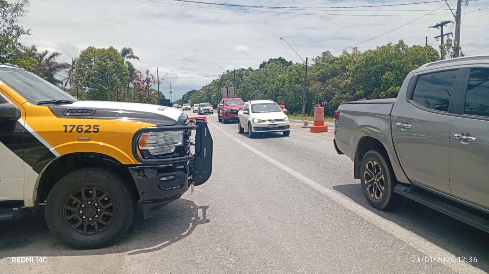 A Polícia Rodoviária Estadual segue atuando de forma ostensiva para garantir a segurança dos usuários das rodovias, auxiliando os condutores e reforçando a importância de uma condução responsável durante o período de grande movimentação no Litoral.