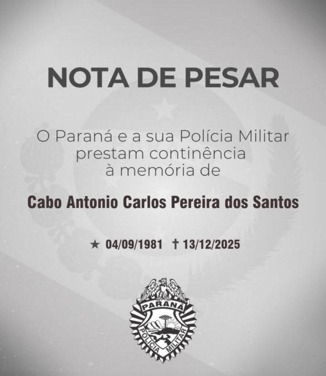 Em nota oficial, a Polícia Militar do Paraná manifestou profundo pesar pela morte do policial, destacando sua dedicação, profissionalismo e compromisso com a segurança pública. A corporação também se solidarizou com os familiares, amigos e colegas de farda, ressaltando o legado deixado por Antonio Carlos Pereira dos Santos ao longo de sua carreira.