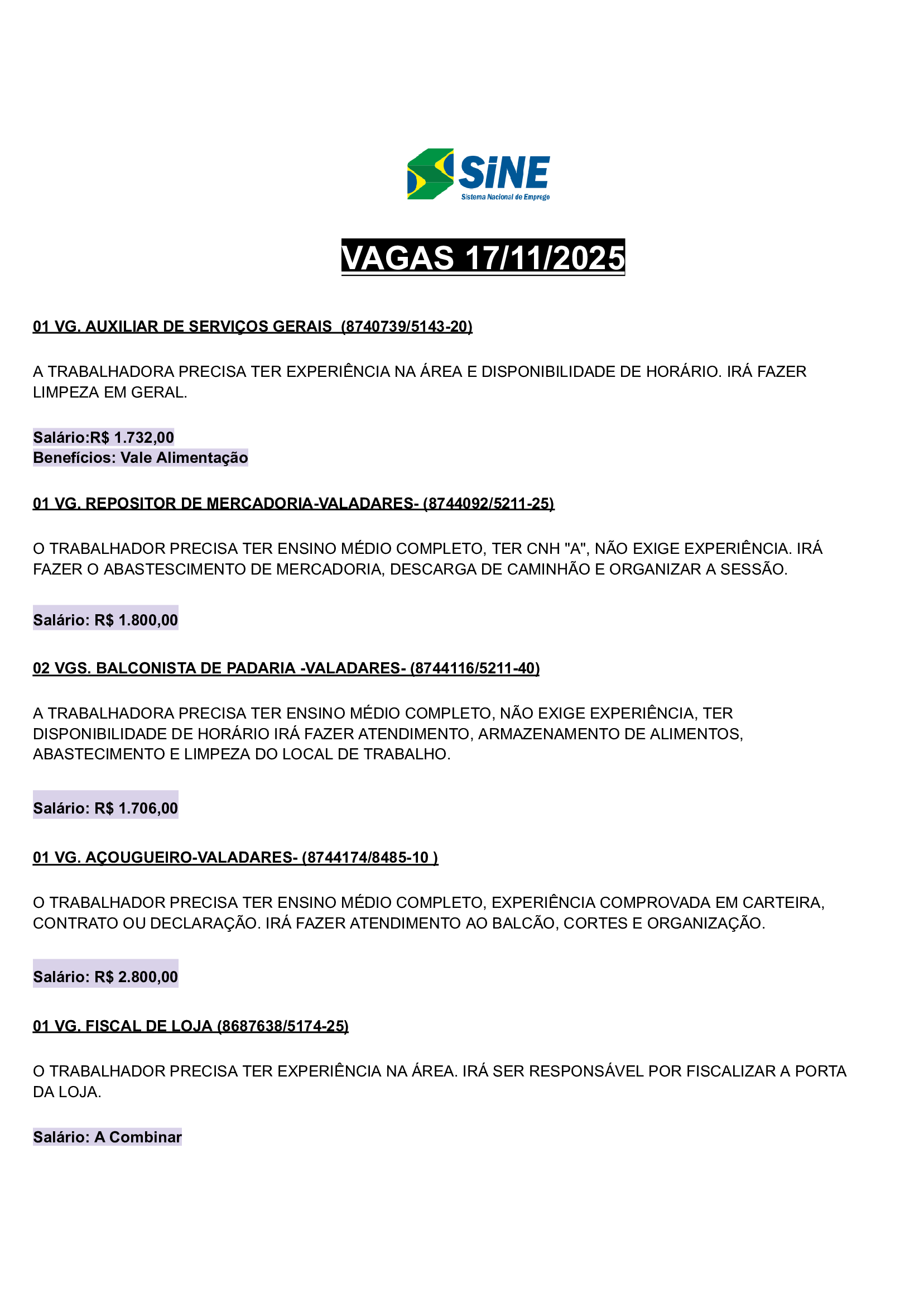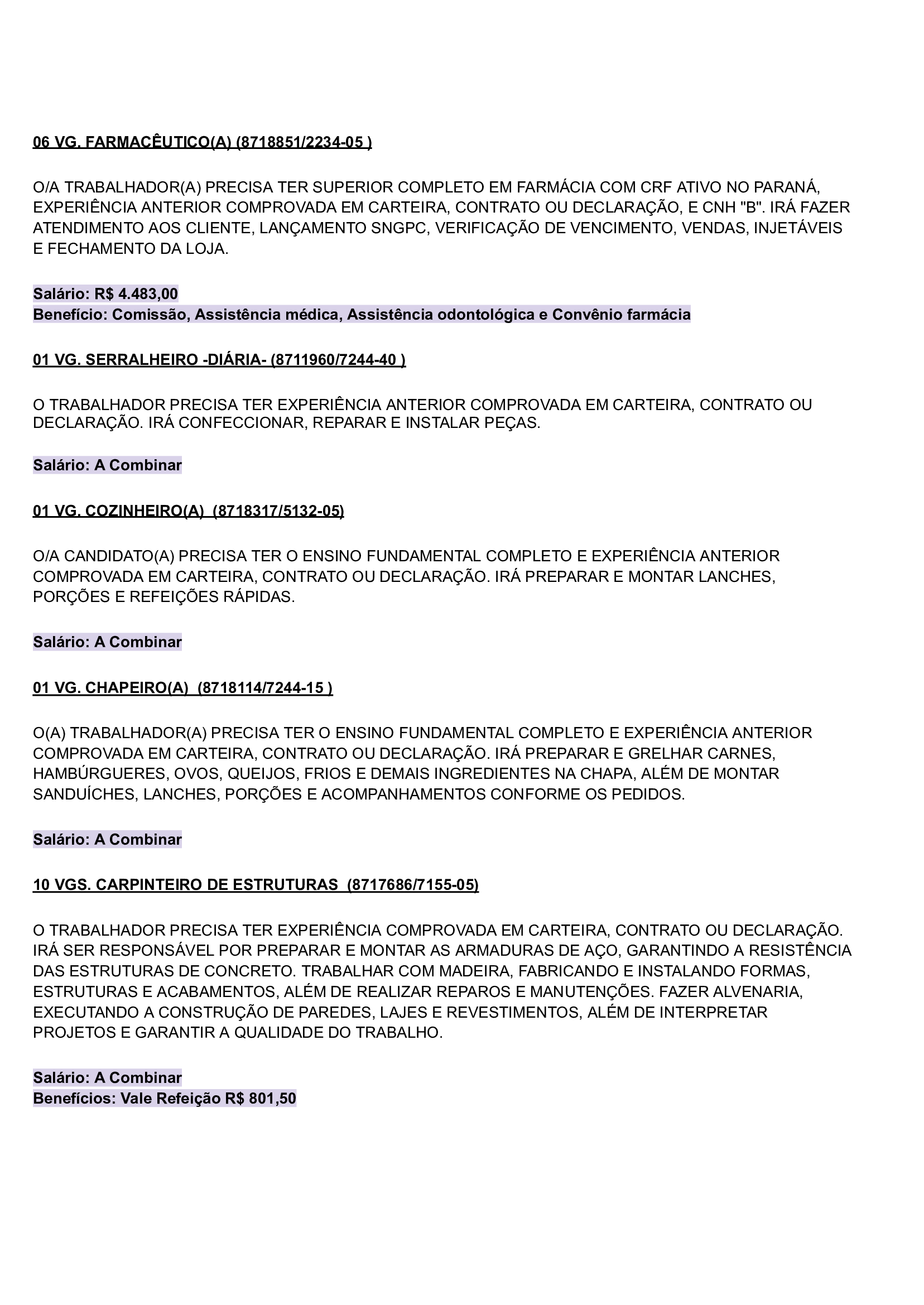 A Prefeitura de Paranaguá por meio da Secretária do Trabalho e Inovação em parceria com o SINE disponibilizam mais de 250 vagas nesse inicio de semana.