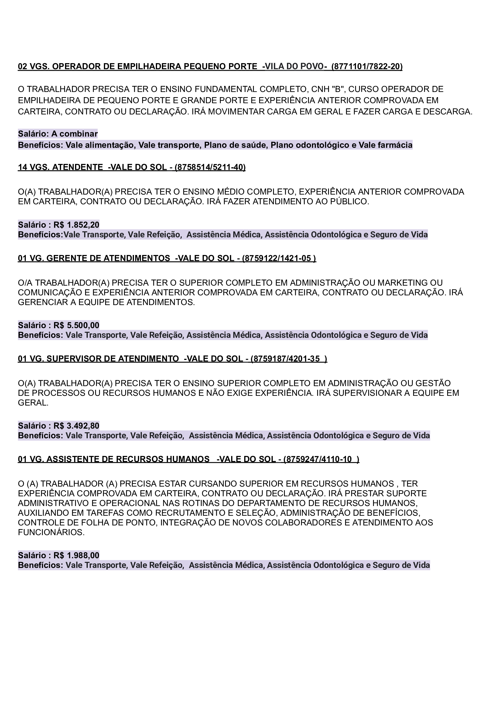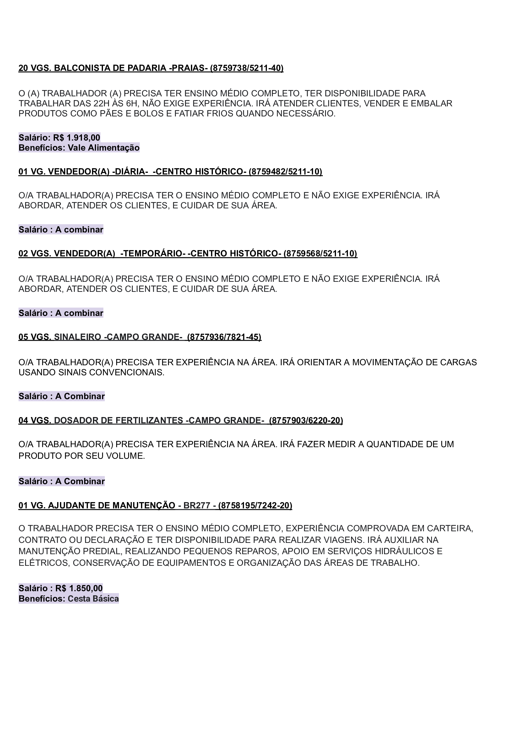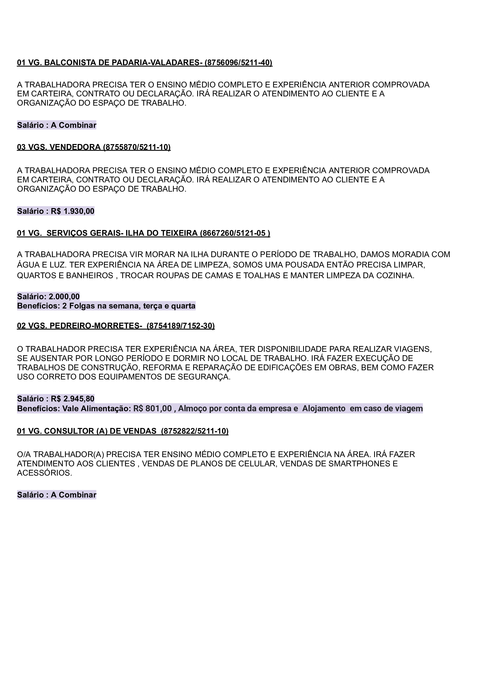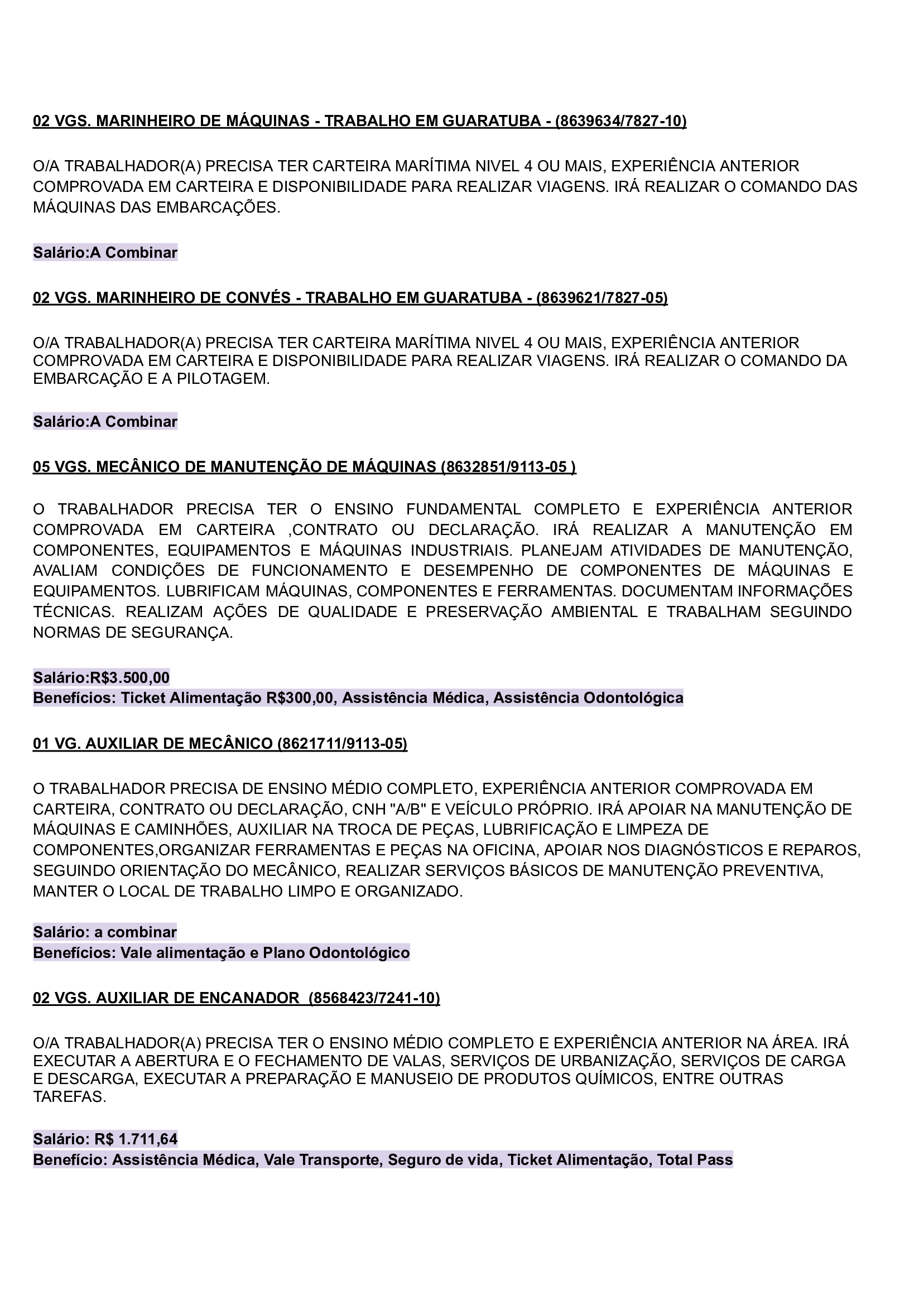 As vagas são variadas e os salários podem chegar até R$5.000,00. Neste inicio de semana contém oportunidades para o ramo de comércio em geral, indústrias, empresas portuárias, ramo de alimentação, supermercados…