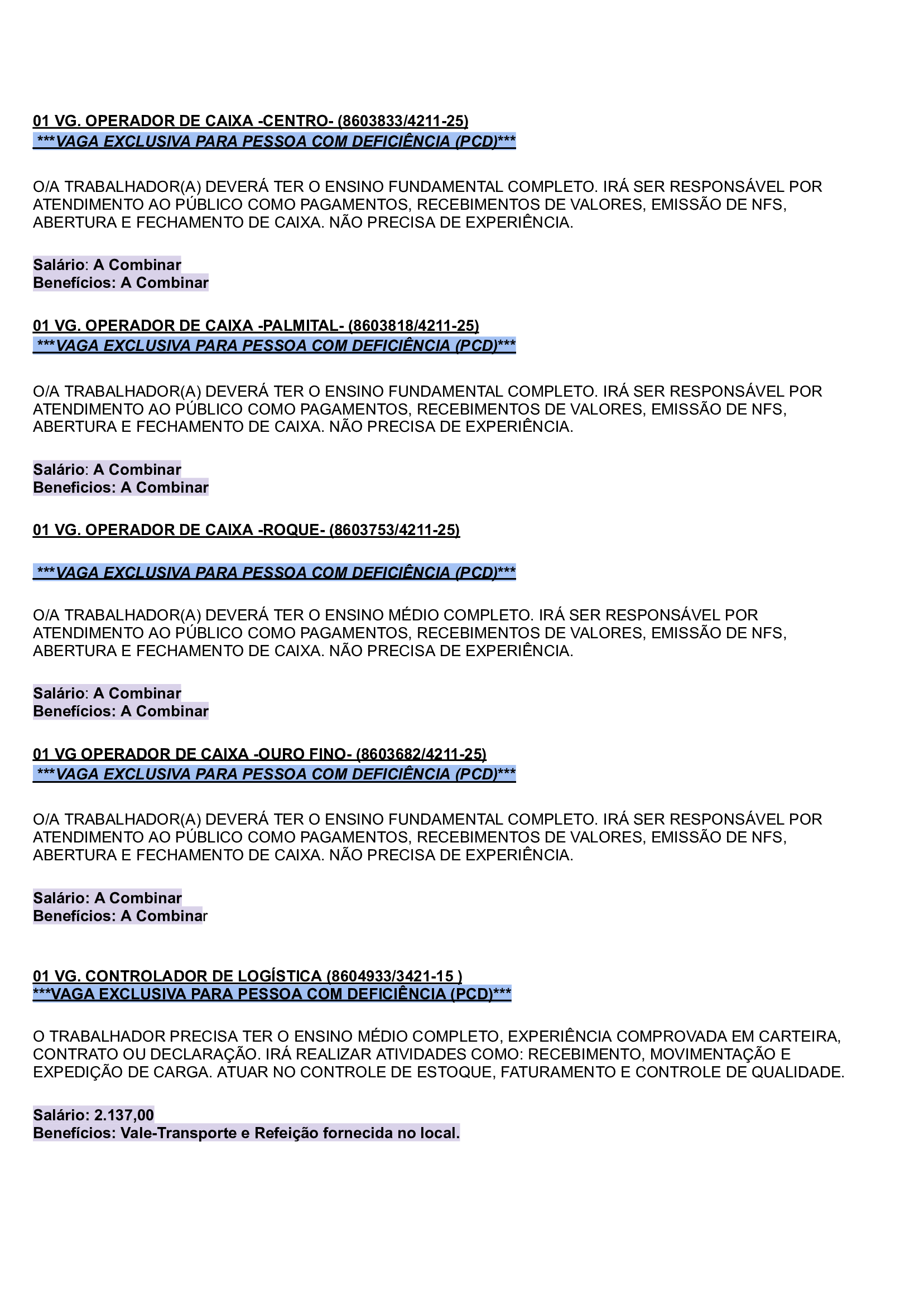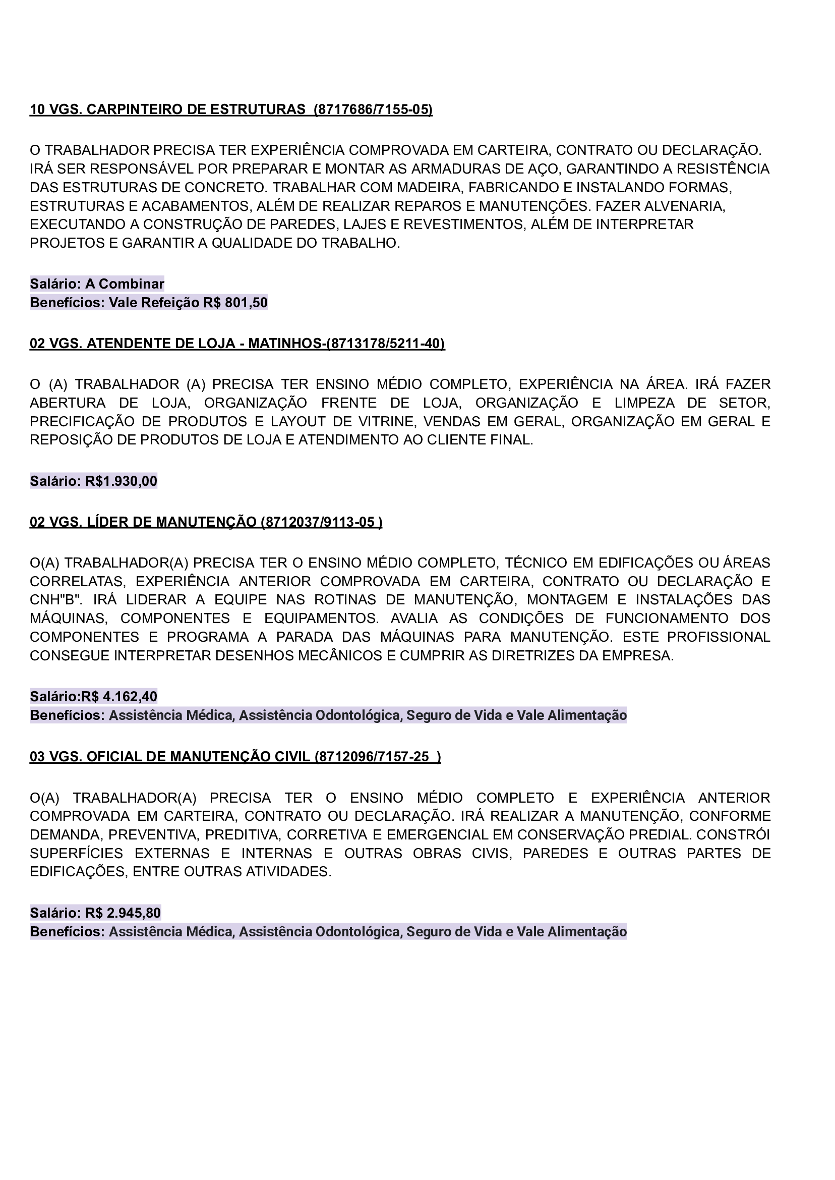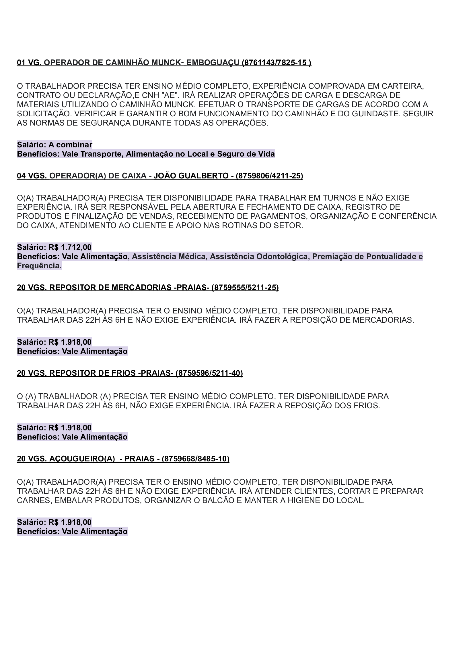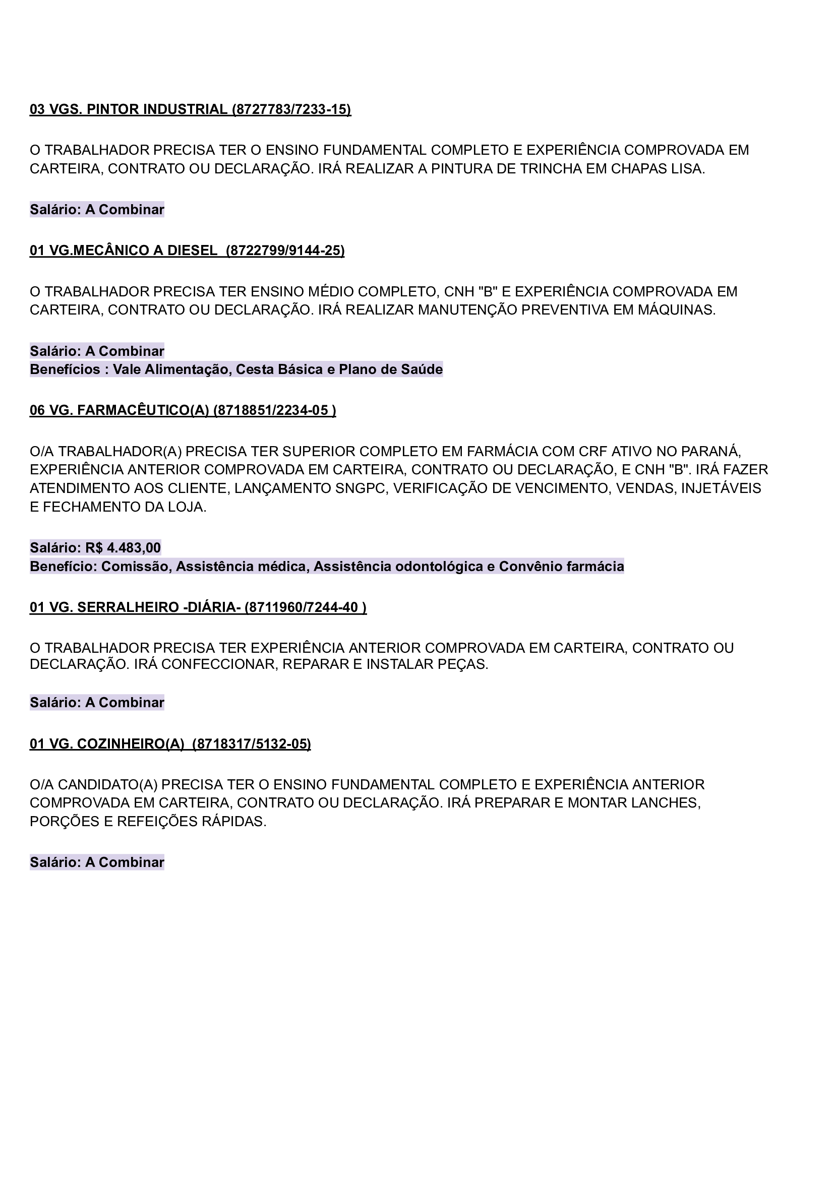 As vagas são variadas e os salários podem chegar até R$5.000,00. Neste inicio de semana contém oportunidades para o ramo de comércio em geral, indústrias, empresas portuárias, ramo de alimentação, supermercados…