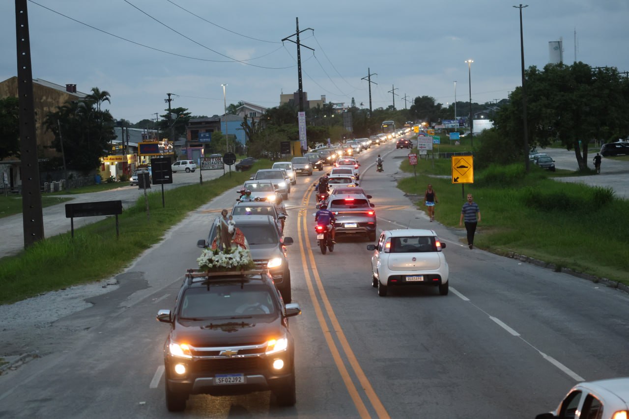 A concentração dos participantes aconteceu na Câmara Municipal, localizada no balneário Pontal do Sul. De lá, veículos e fiéis seguiram em percurso até o Santuário São José, em Praia de Leste, reunindo moradores e visitantes ao longo do trajeto.