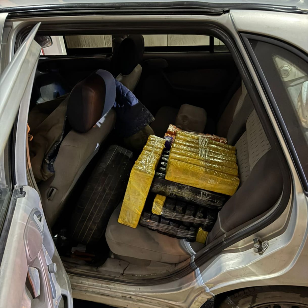 De acordo com a PM, a abordagem aconteceu por volta da 1h30, após a equipe desconfiar de um VW Gol prata que circulava com os amortecedores rebaixados. No banco traseiro, os policiais notaram uma blusa cobrindo o que pareciam ser tabletes de entorpecentes.
