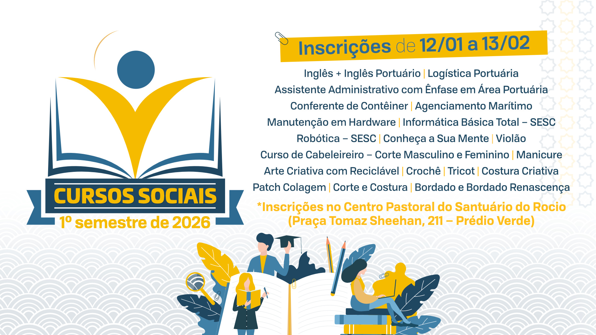 O Santuário Estadual de Nossa Senhora do Rocio anunciou o calendário de inscrições para os cursos sociais profissionalizantes do 1º semestre, uma iniciativa voltada à capacitação e desenvolvimento profissional da comunidade.