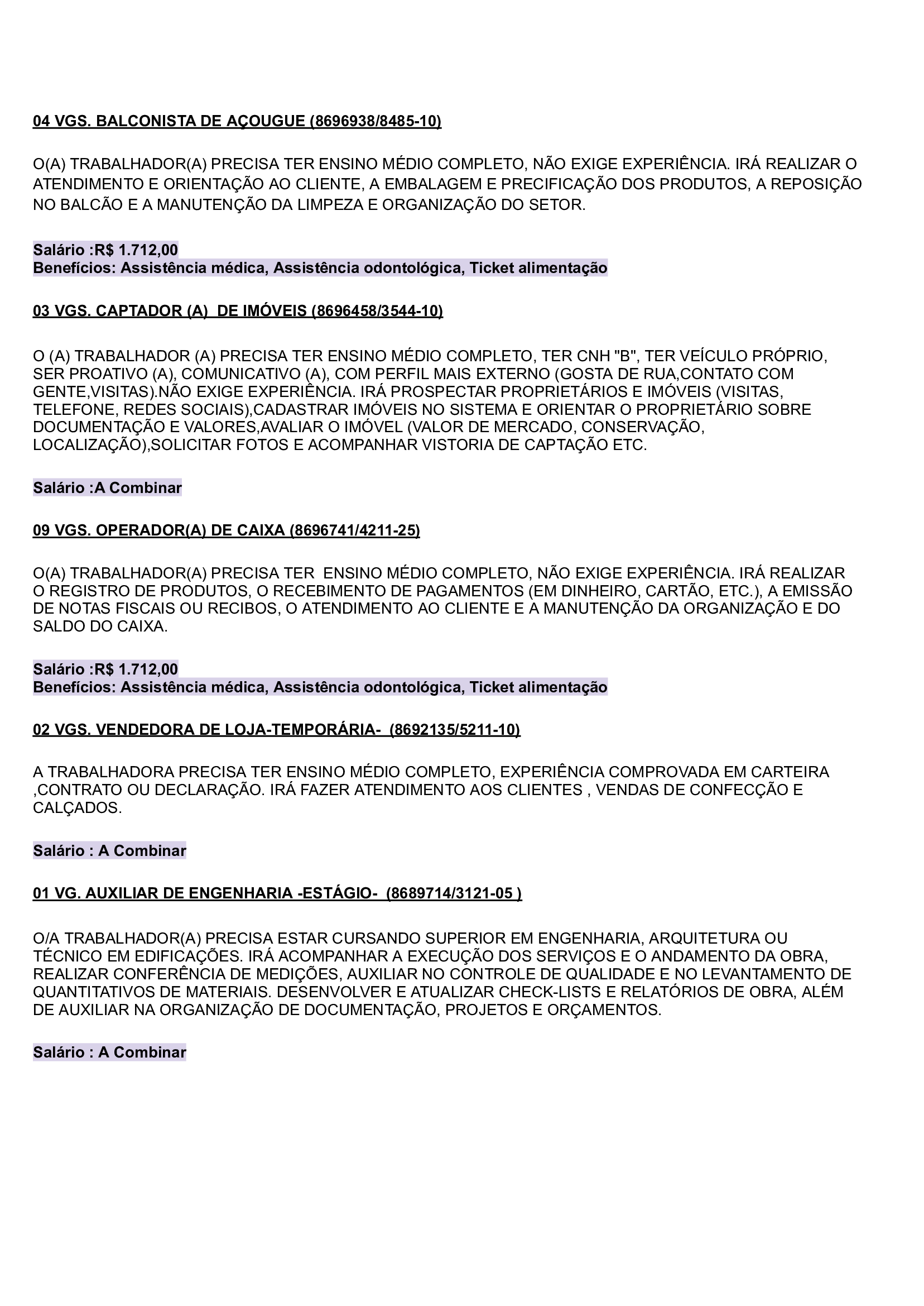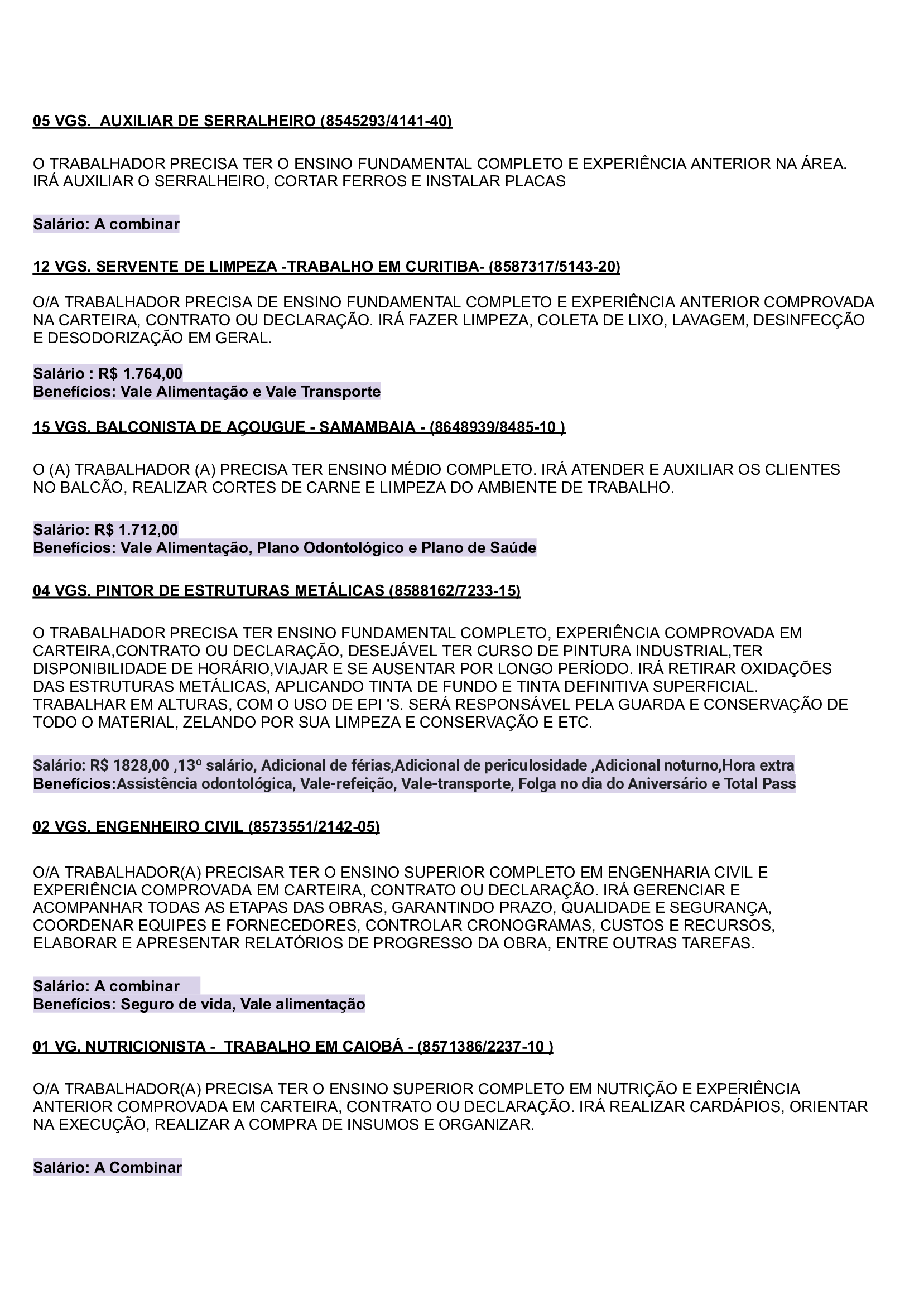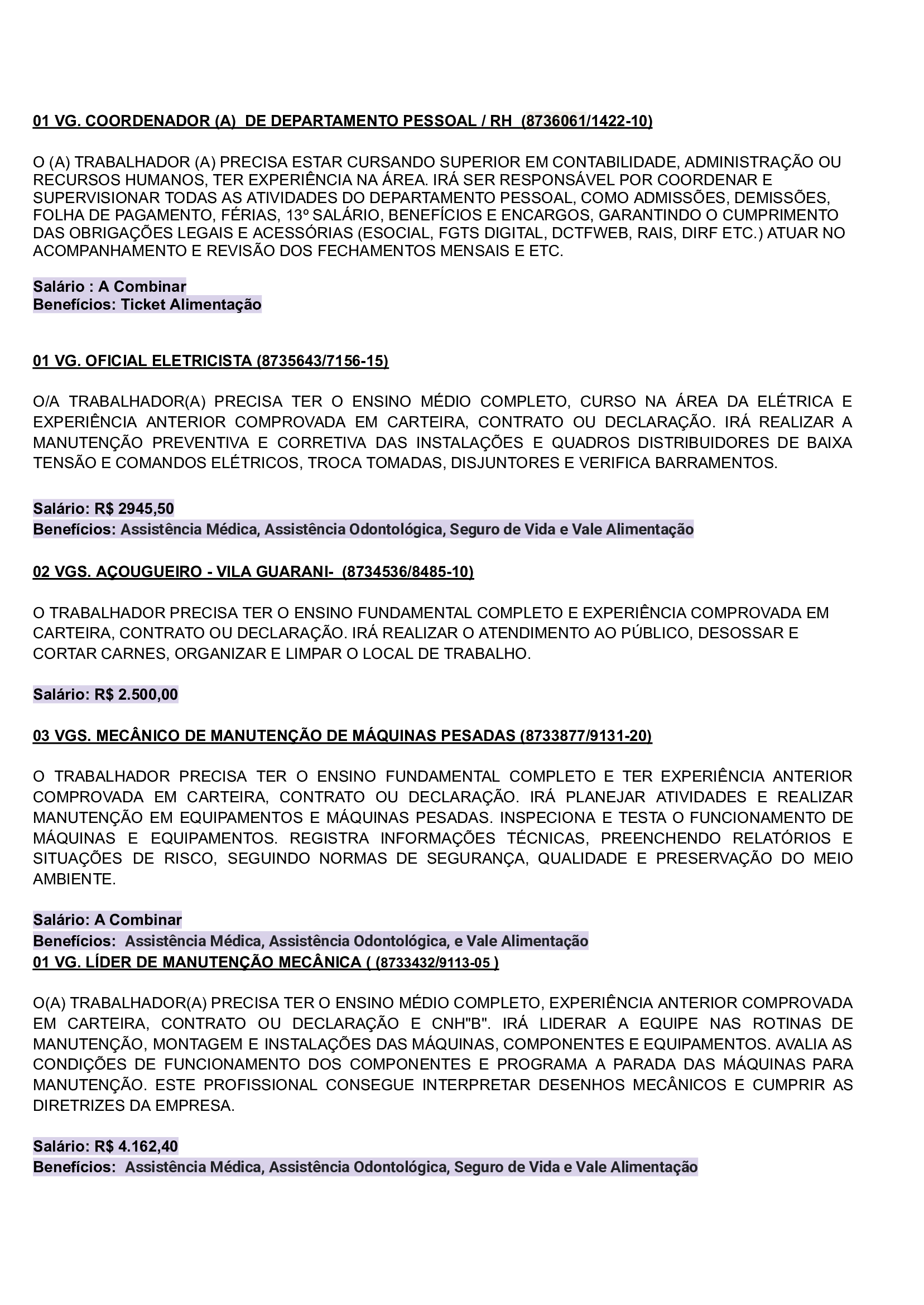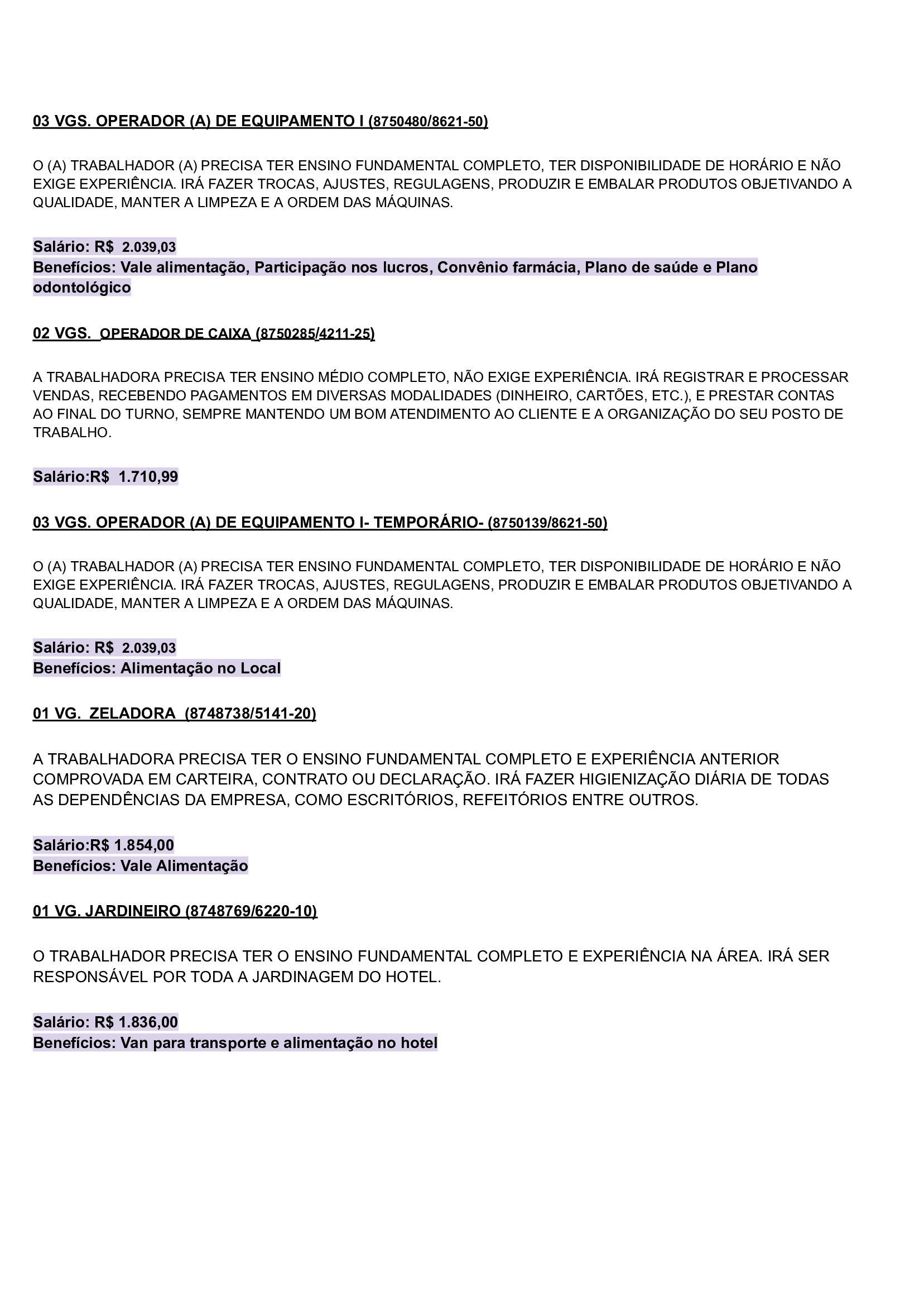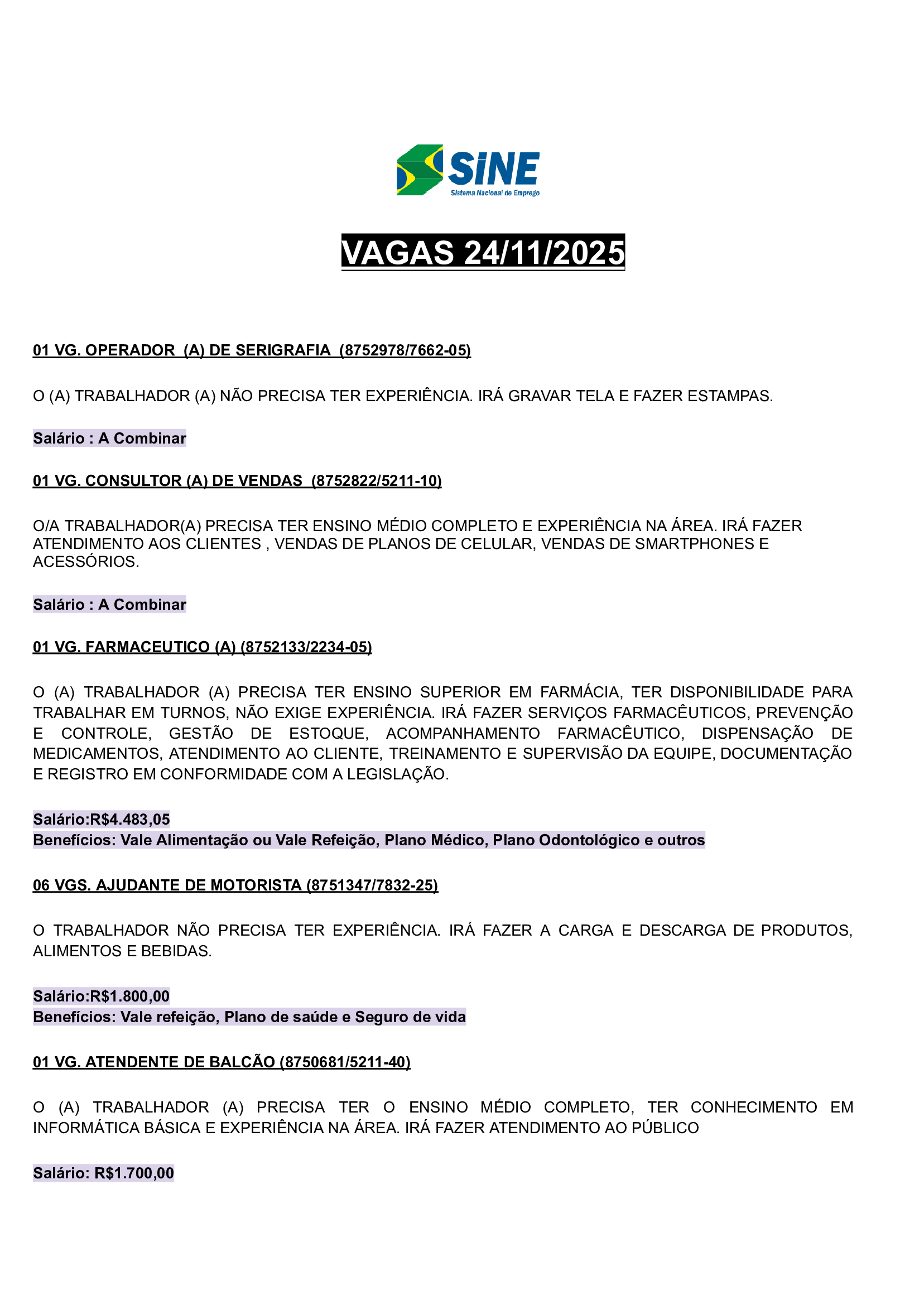 A Secretaria Municipal de Trabalho e Inovação (Setrin) divulgou nesta segunda-feira (24) a oferta de 281 novas vagas de emprego disponibilizadas por meio do SINE – Agência do Trabalhador.