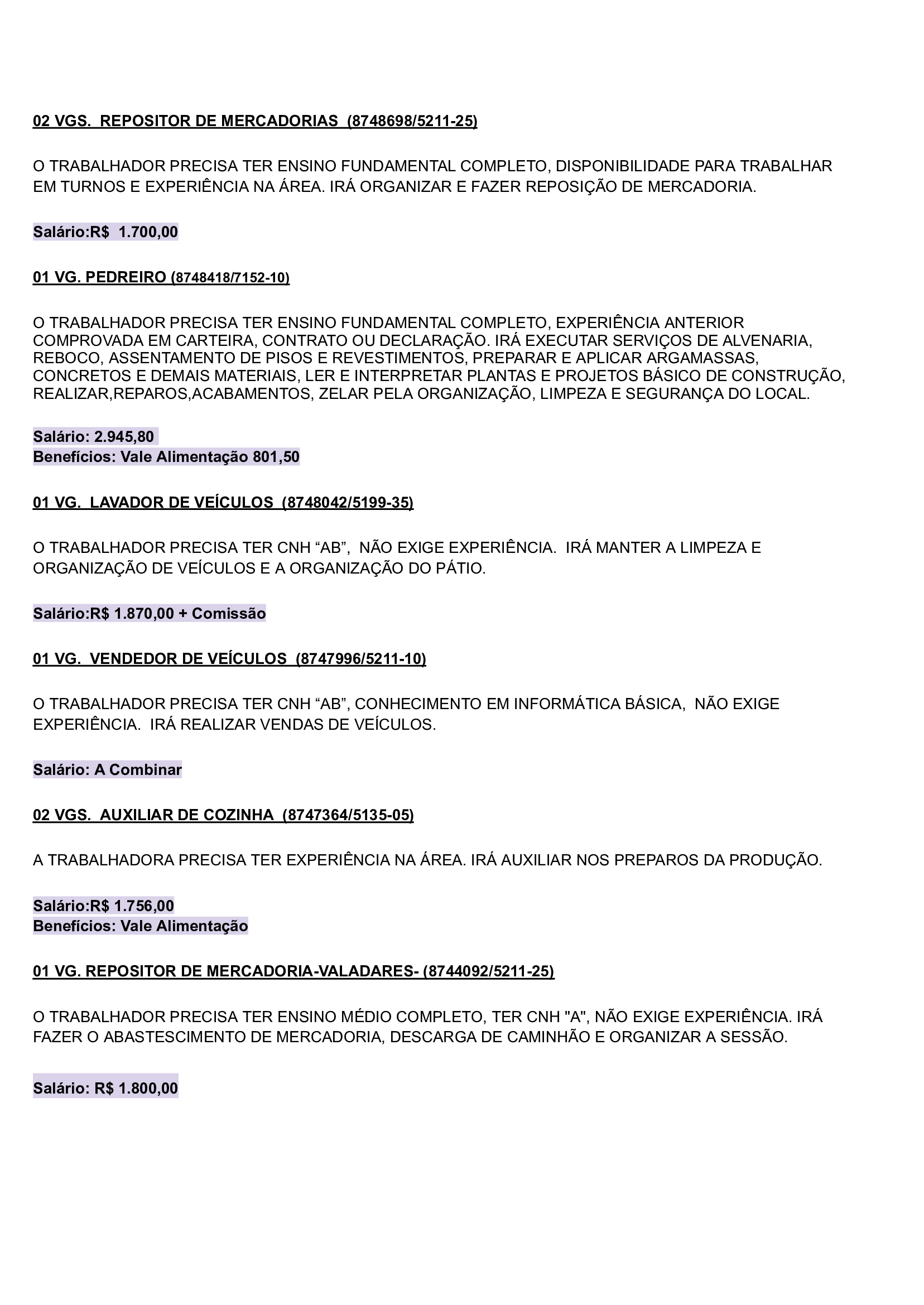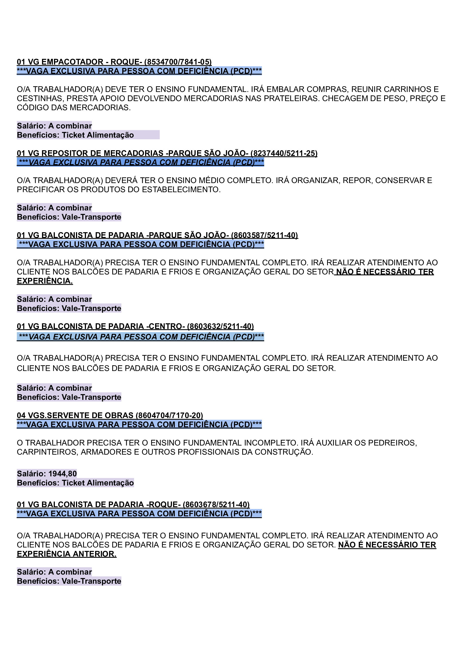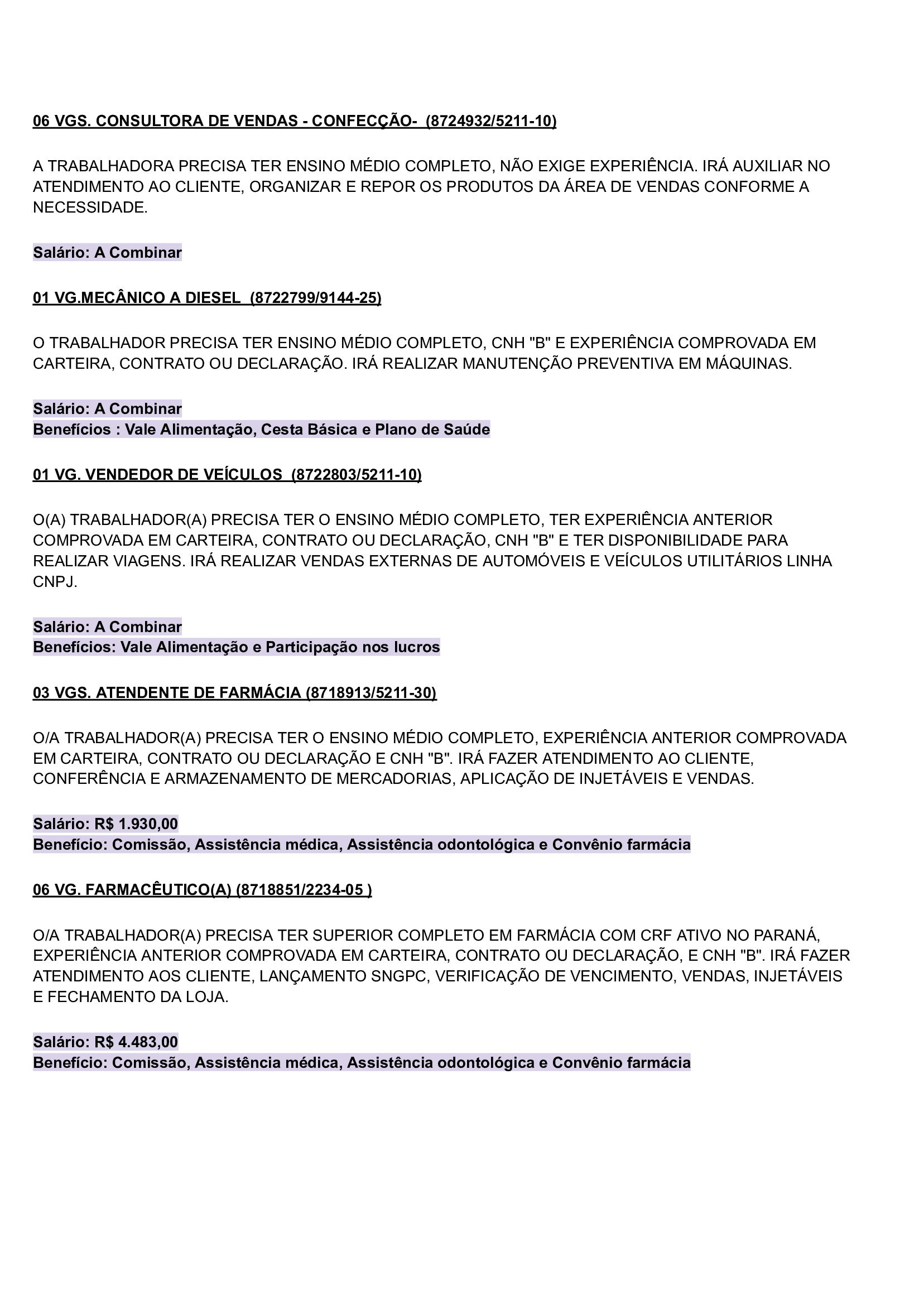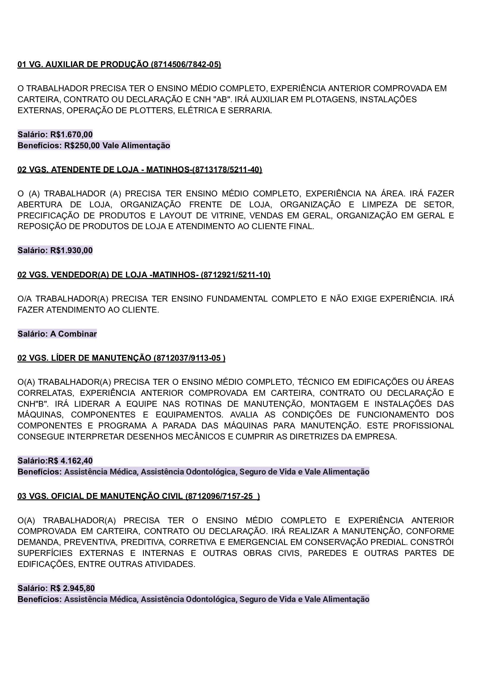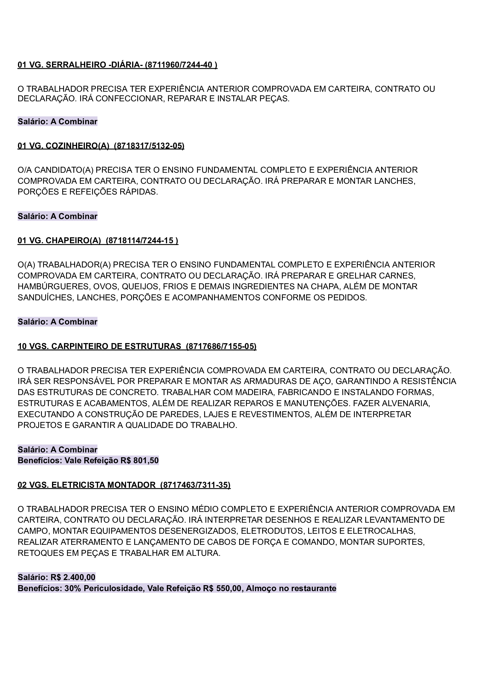A Secretaria Municipal de Trabalho e Inovação (Setrin) divulgou nesta segunda-feira (24) a oferta de 281 novas vagas de emprego disponibilizadas por meio do SINE – Agência do Trabalhador.