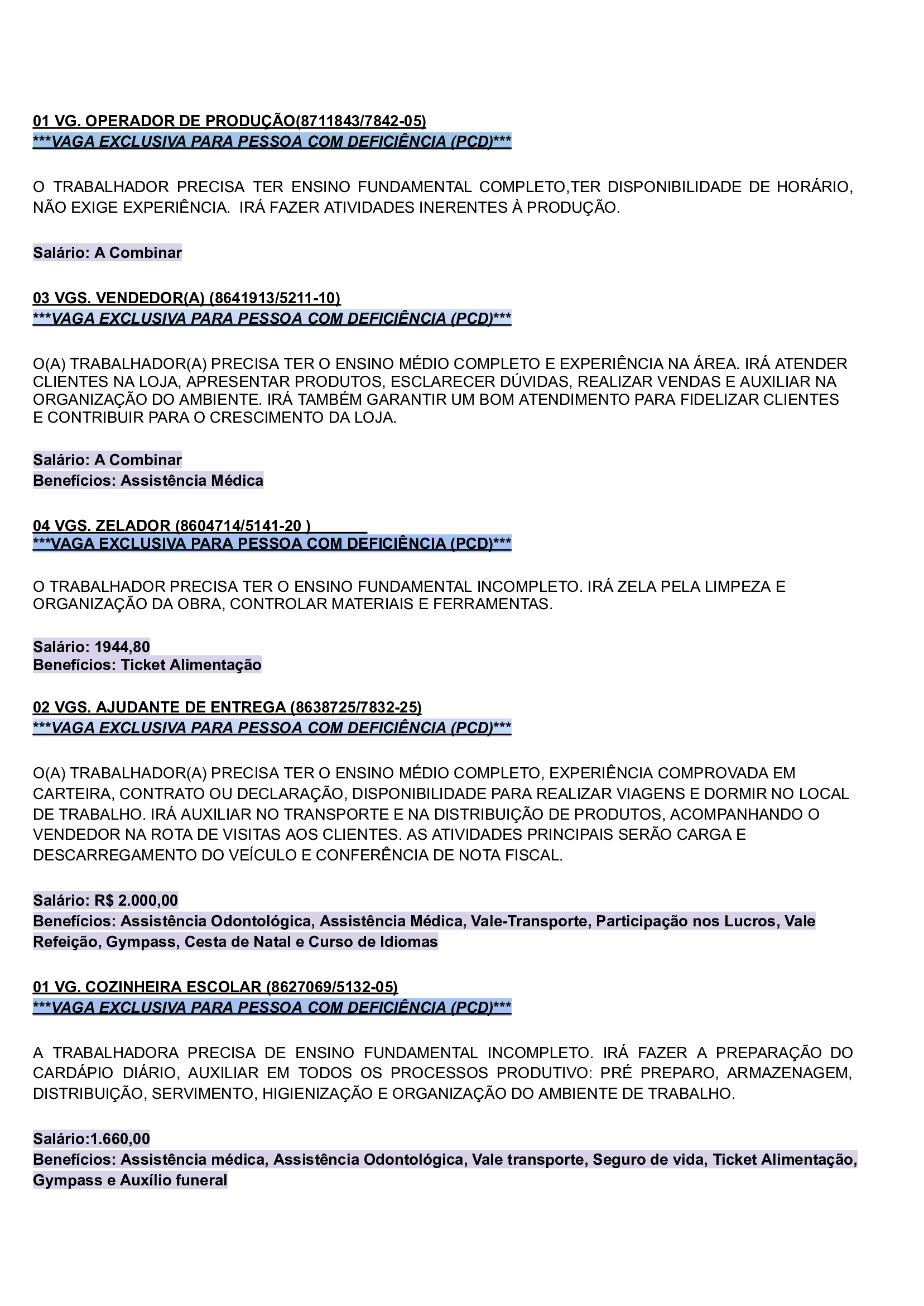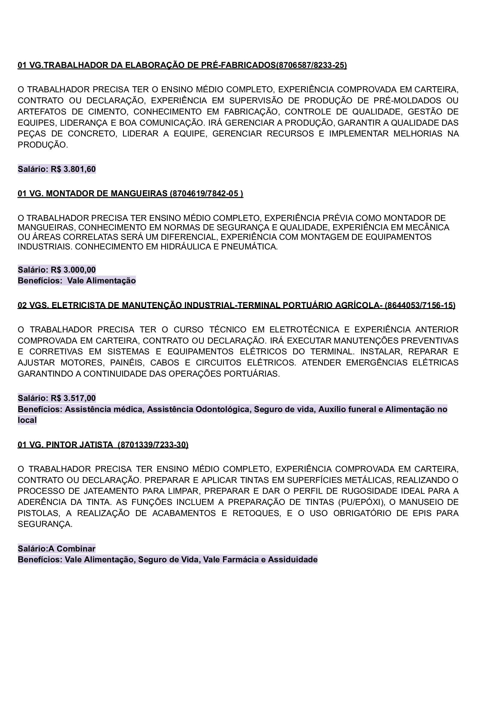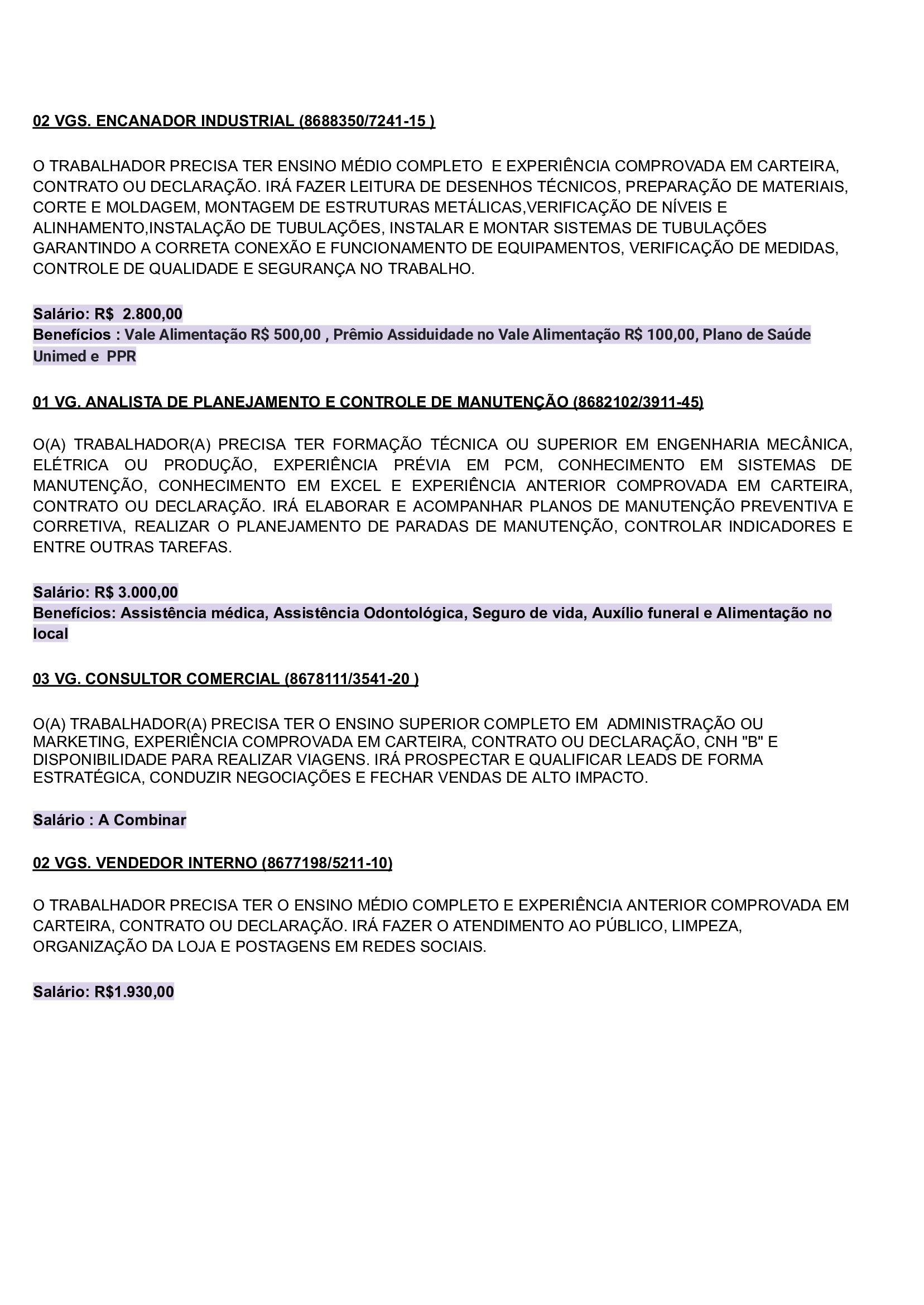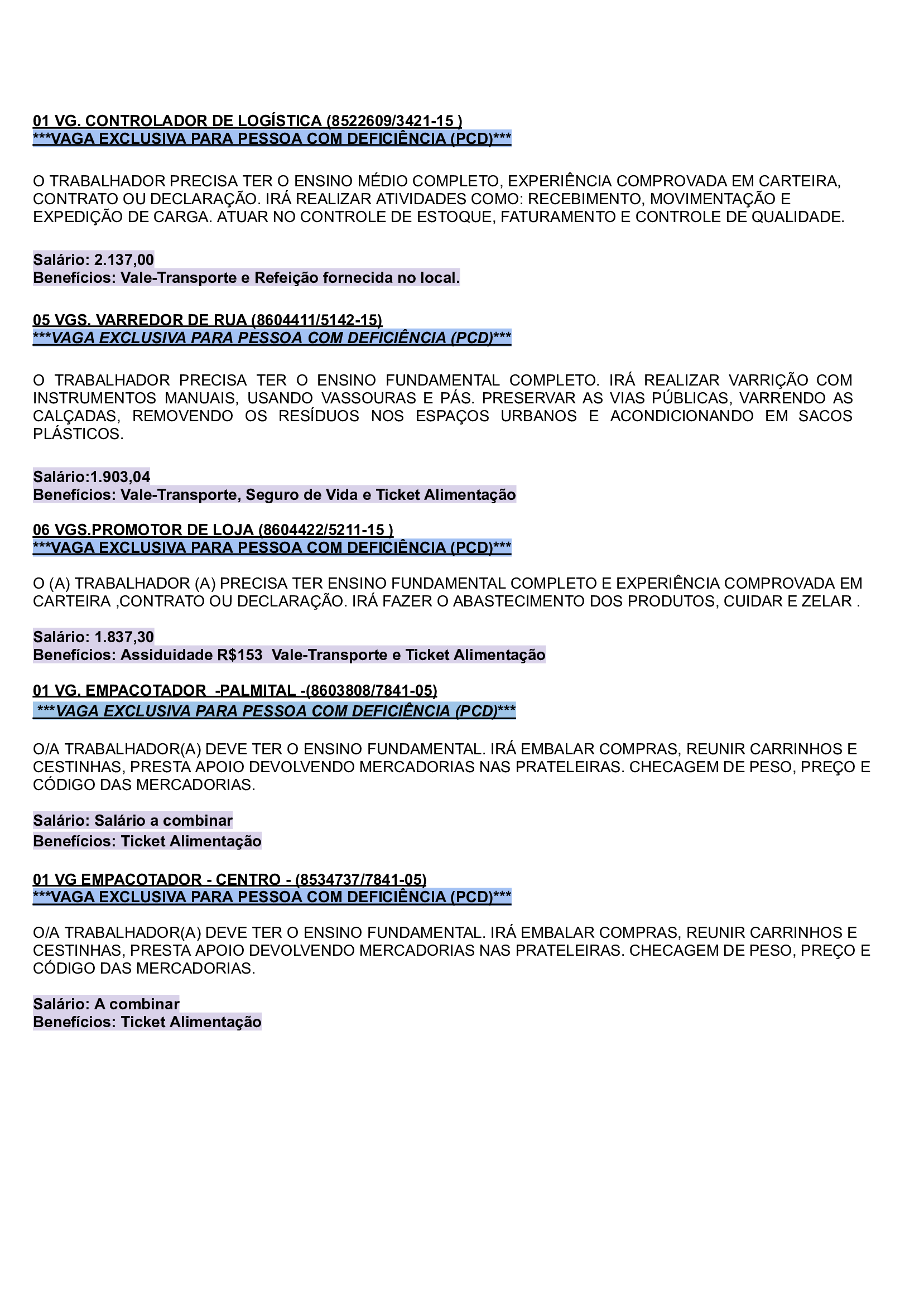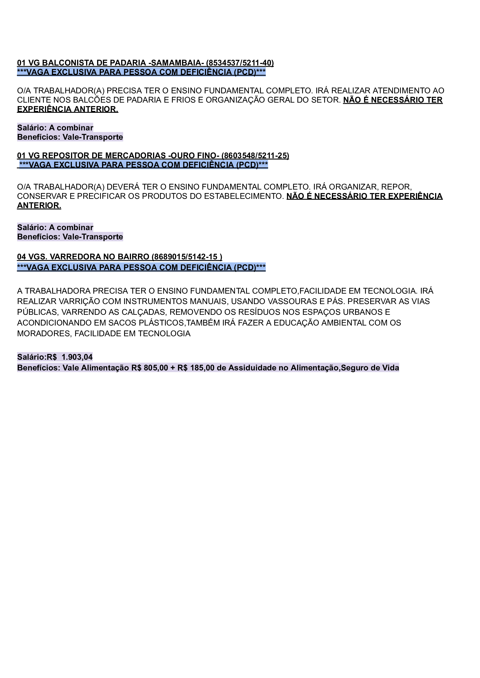 A Secretaria Municipal de Trabalho e Inovação (Setrin) divulgou nesta segunda-feira (24) a oferta de 281 novas vagas de emprego disponibilizadas por meio do SINE – Agência do Trabalhador.