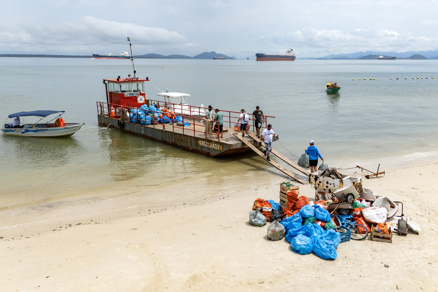 Nativos, moradores e visitantes da Ilha do Mel retiraram quase 11 toneladas de resíduos durante o 3º Mutirão de Limpeza das Praias, realizado neste sábado. Garrafas, isopor, redes de pesca e até eletrodomésticos foram os principais materiais coletados nas regiões das praias da Ponta Oeste, da Fortaleza e de Brasília. A Portos do Paraná apoiou a iniciativa, criada pela própria comunidade, fornecendo embarcação, luvas, sacolas e sacochilas para os voluntários.